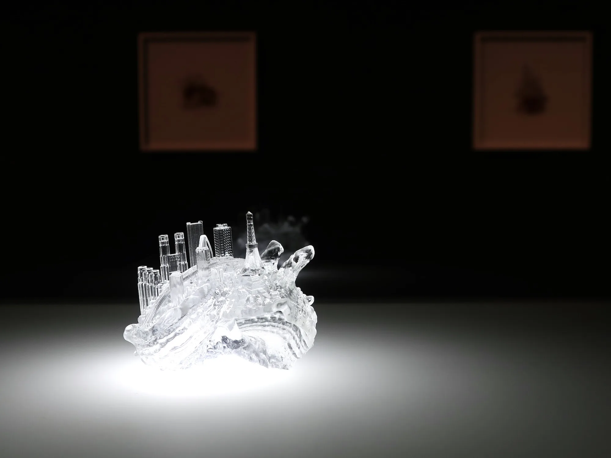 トルソー同様にライトアップされた、AKI INOMATA の《やどかりに「やど」をわたしてみる》に登場するヤドカリの「やど」には、着替えることで「私」を改め、違う「私」に変わろうと望む人間の心理が思わず重なる。