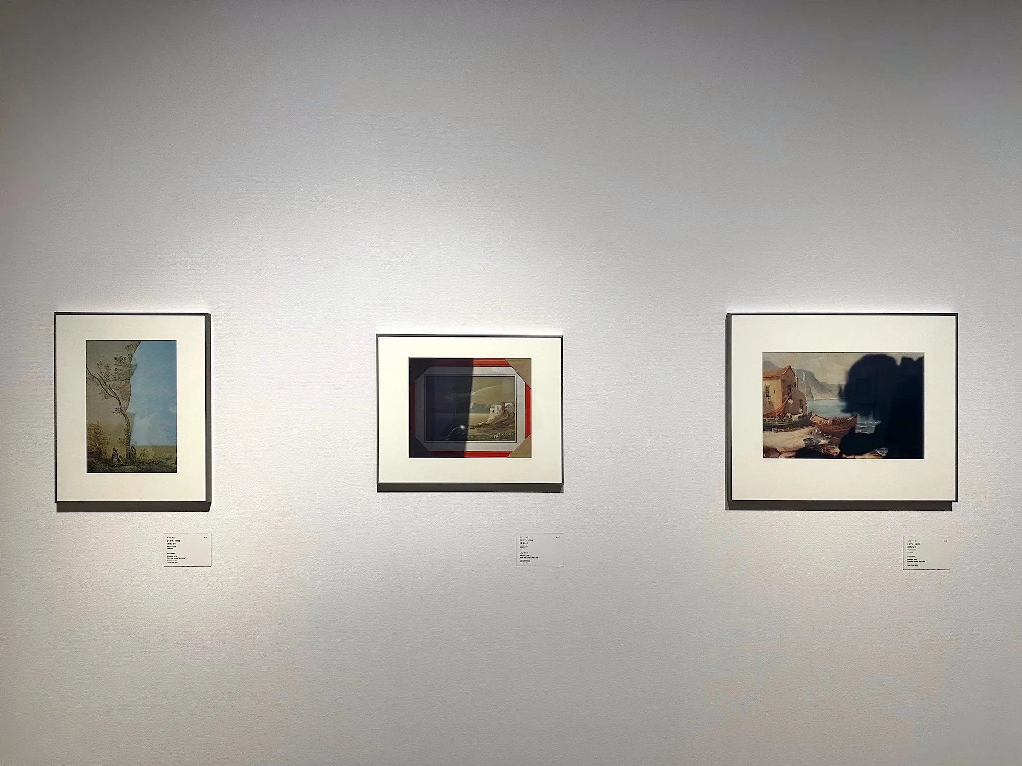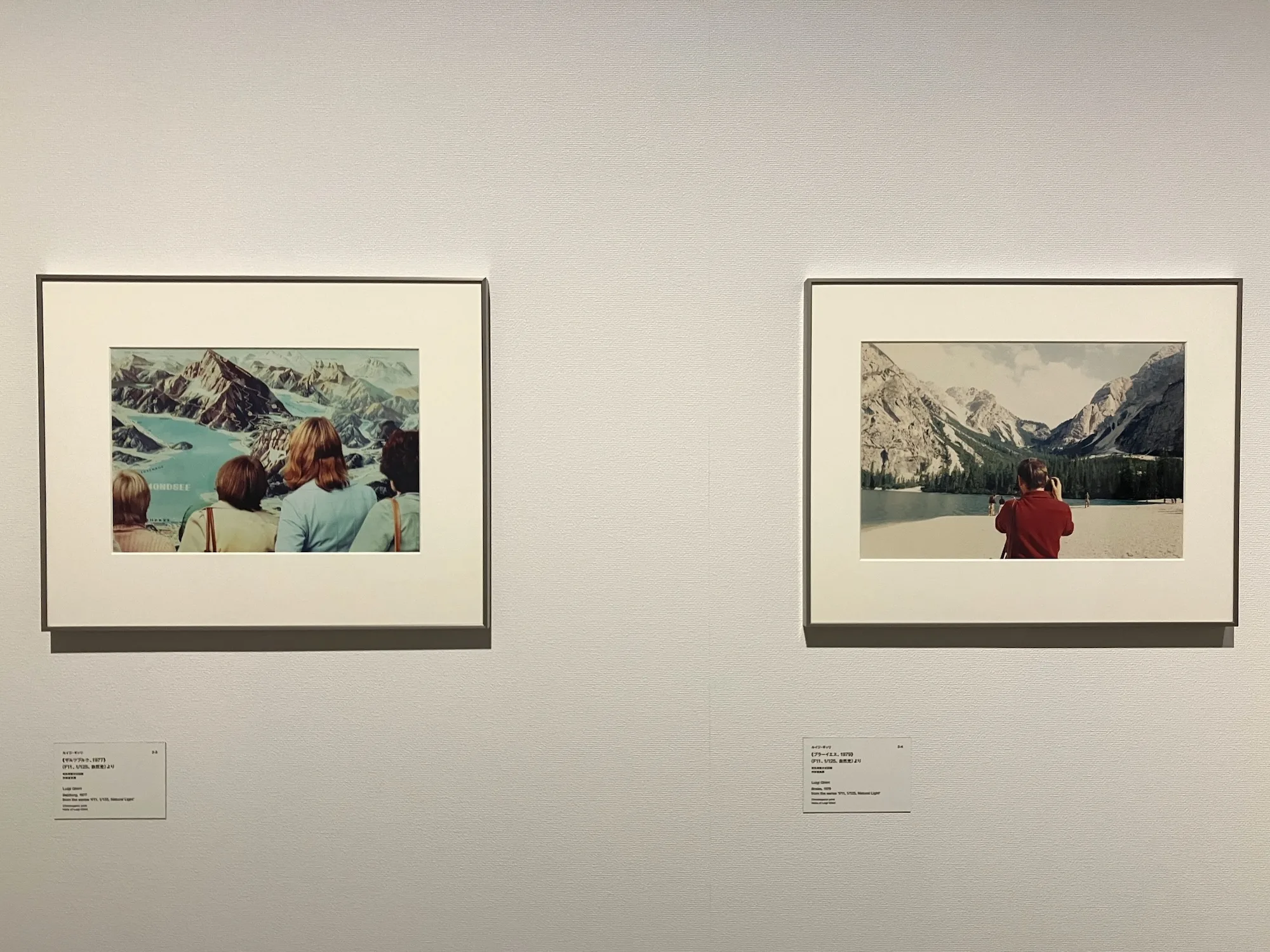 さらにここで注目したいのは、《モデナ、1978》と題された〈静物〉シリーズからの1枚である。おそらくは額の割れたガラス越しに撮られたと思われる写真に写る絵画は、フランスの画家カミーユ・コローの《モルトフォンテーヌの思い出》である。ガラスには青空が投影され、割れたガラスといういささかセンチメンタルなモチーフが鑑賞者の想像力を掻き立てる。ギッリはタイトルには大雑把な撮影地と撮影年しか与えていないが、そこにはコロー作品のタイトルに現れる「思い出」と、撮影者の記憶や1978年にモデナにいたという過去完了的事実、そしてそれを見た者に喚起するノスタルジーとが、重層的に折り重なっている。言いかえれば、ここでは遠近法的な意味での前景/遠景にとどまらず、写真というメディアにつねにつきまとうノスタルジー、記憶、実在感(それはロラン・バルトが『明るい部屋』で「かつてそこにあった」という言葉で言い表してみせた写真のノエマそのもの)さえもが1枚の写真に閉じ込めたられたと言っていいだろう。