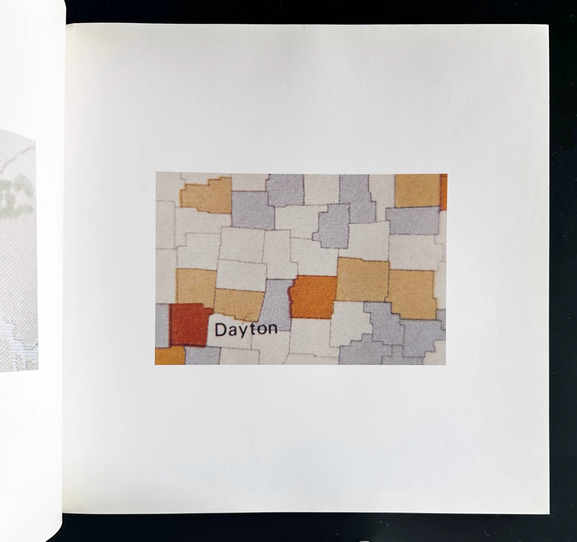 あとで詳しく見るように、ギッリはイメージとテキスト(それはタイトルであり写真の中の文字でもある)の最小限の関係が媒介して喚起する想像力にも思考をめぐらせていたと思われる。こうしたギッリの形而上学的試みは、本展には出品されていなかったものの、1973年に制作した〈地図(Atlante)〉のシリーズ(ギッリの没後、1999年にChartaから写真集として出版)でもっともラディカルに実践されている。ここでは、地図の一部が複写のようなかたちで撮影されることで地名や記号が本来の用途や文脈から切り離されている。ギッリはそうすることで情報やコンテクストも平板化しようと試みていたのだ。