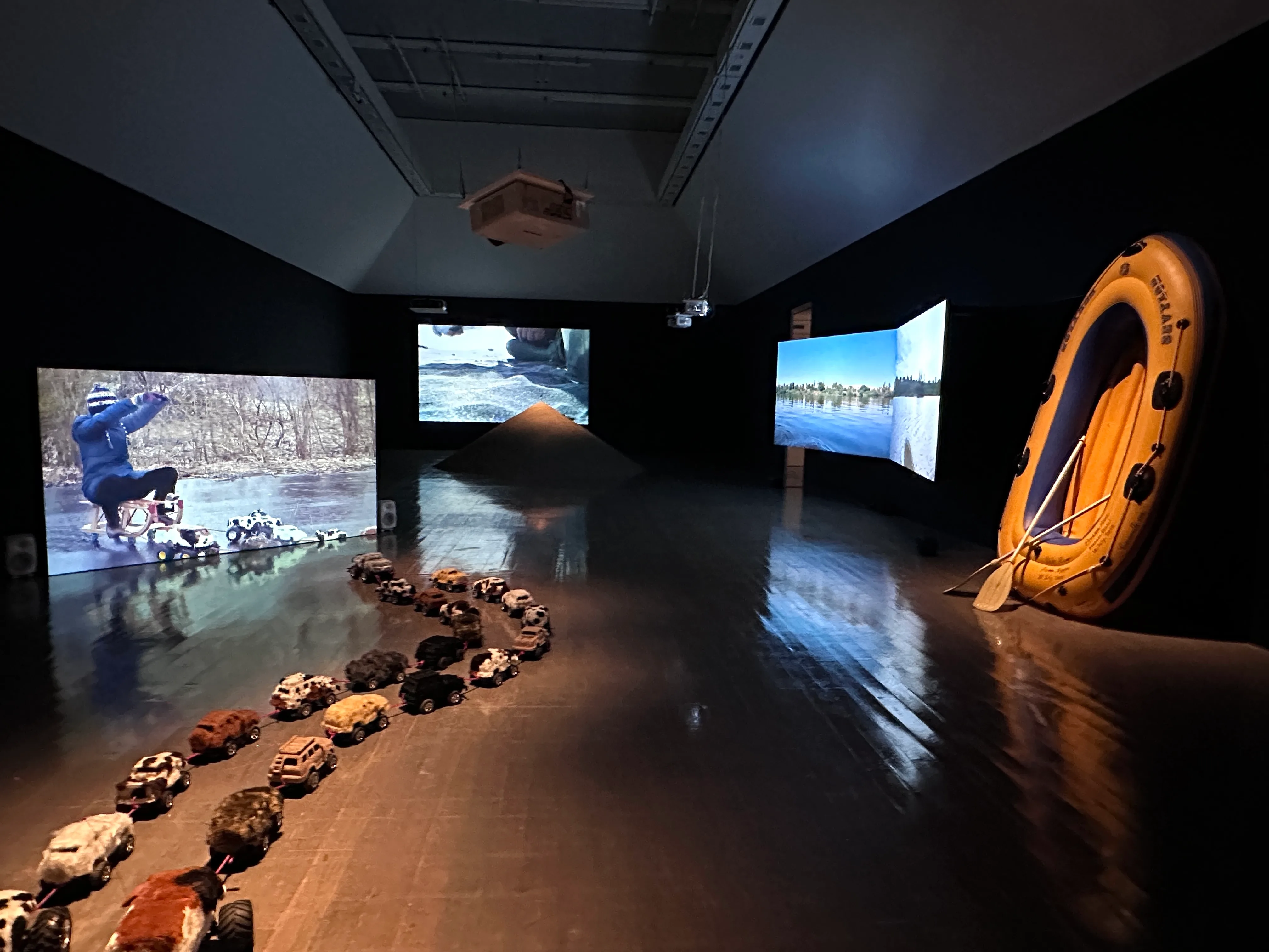ギャラリー5は、変化やアクティブな姿勢をテーマとした部屋。南極観測隊の苦難とそり犬たちの悲劇を描いた『南極物語』で、人間と犬のあいだの「コントロール」について考えたことをきっかけに手がけた《Dogsled》(2008) 。そして「メインストリームを行く」という言葉を起点に、世界の主流(メインストリーム)としてのアマゾン川とナイル川をゴムボートで下る《GOING MAINSTREAM》(2010)や、浜辺の砂鉄からスプーンを鋳造する《A Spoon Made From The Land》(2009)など。同館のラウンジでは、日本でドイツのミネラルウォーターを買い、その水をドイツの源流に「放流」しに行くドキュメンタリーがが上映されているが、「まずやってみる」という精神と行動力には本展の各所で驚かされるはずだ。
