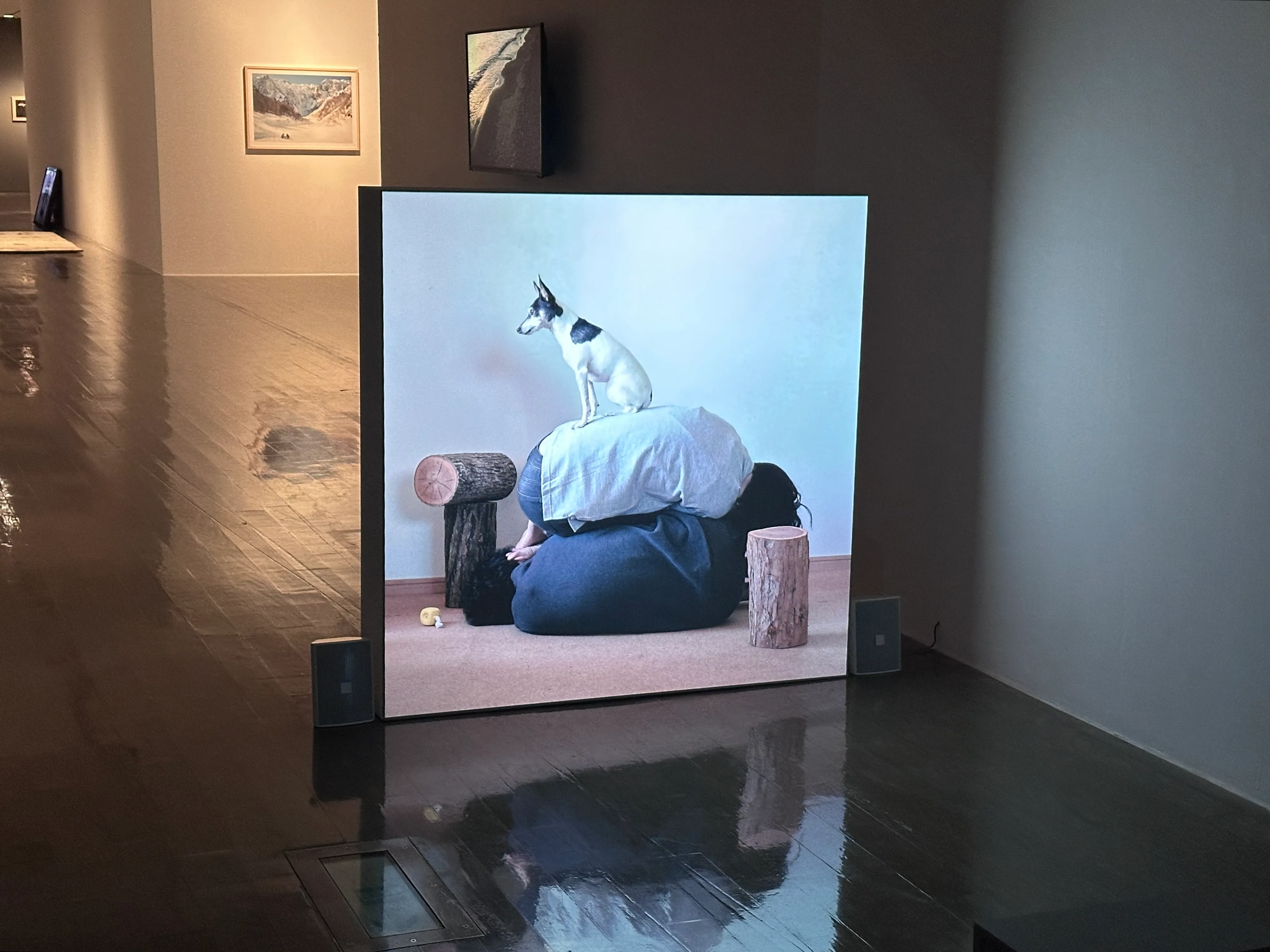 愛犬、動物園の動物といったコントロール不能な「他者」との協働作品が並ぶのは、ギャラリー6。人間中心主義への懐疑の目線も透けて見えるような、作家の先見性を感じさせるセクションになっている。「アン(愛犬)を迎えたことで“他者”を感じることが増えた」(小林)。