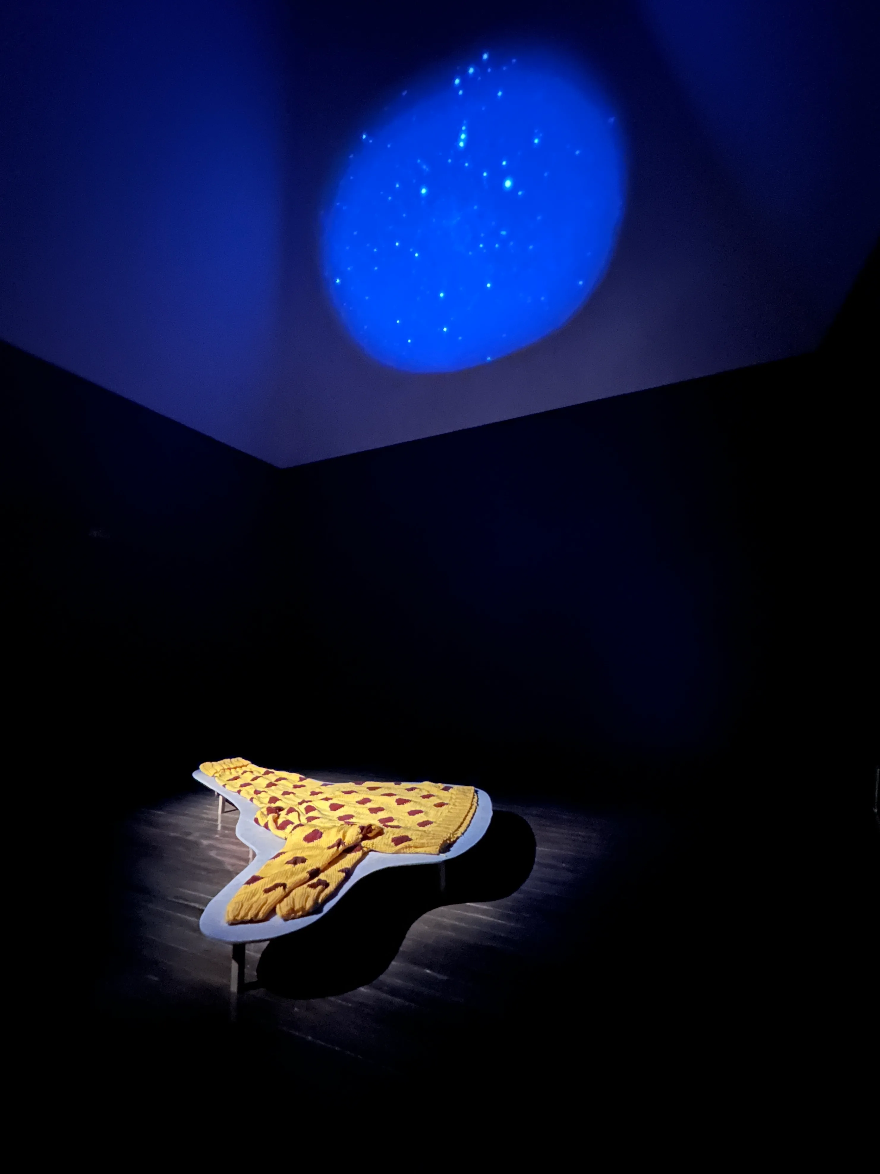 ふたりが世界各地でのレジデンスプログラムを経験する前の作品が並ぶ、ギャラリー3。アフリカから日本へ渡り、上野動物園で暮らすキリンのためにセーターを作る《Present(for a Girrafe)》(2004)、中学生とコラボレーションした《It’s a small world》(2004)等の作品からは、初期から変わらないほかの動物を含む「他者」との取り組みの姿勢が見えてくる。
