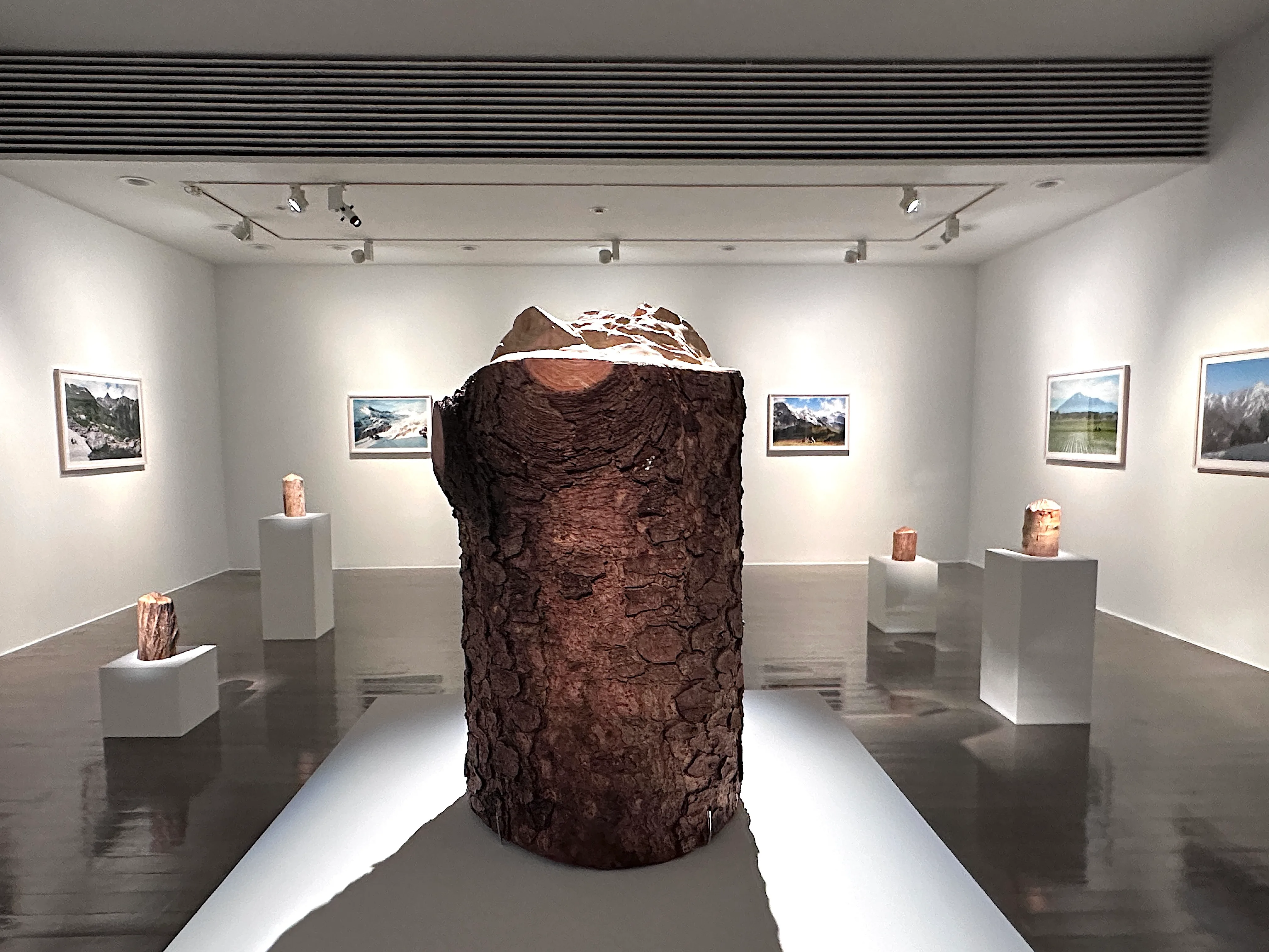 スイスでのレジデンス時、近所に転がる薪を見つけたことから始まった山のシリーズは、ギャラリー4で展示。薪を背負って山に登り、モデルとなる山を見ながら薪に彫刻するこのシリーズは、セルフタイマーで撮影した写真もあわせて発表される。東日本大震災時にはベルリンにいたふたり。「震災で日本の風景が変わるのではという恐怖感があり、風景を記録しなければならないという気持ちで日本の山シリーズにも取り組んだ」と振り返る。