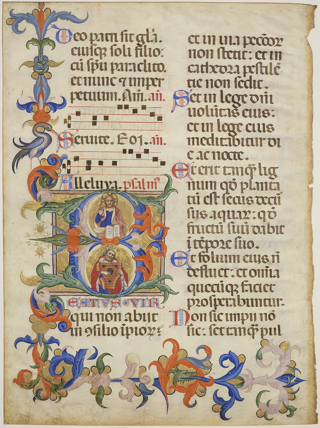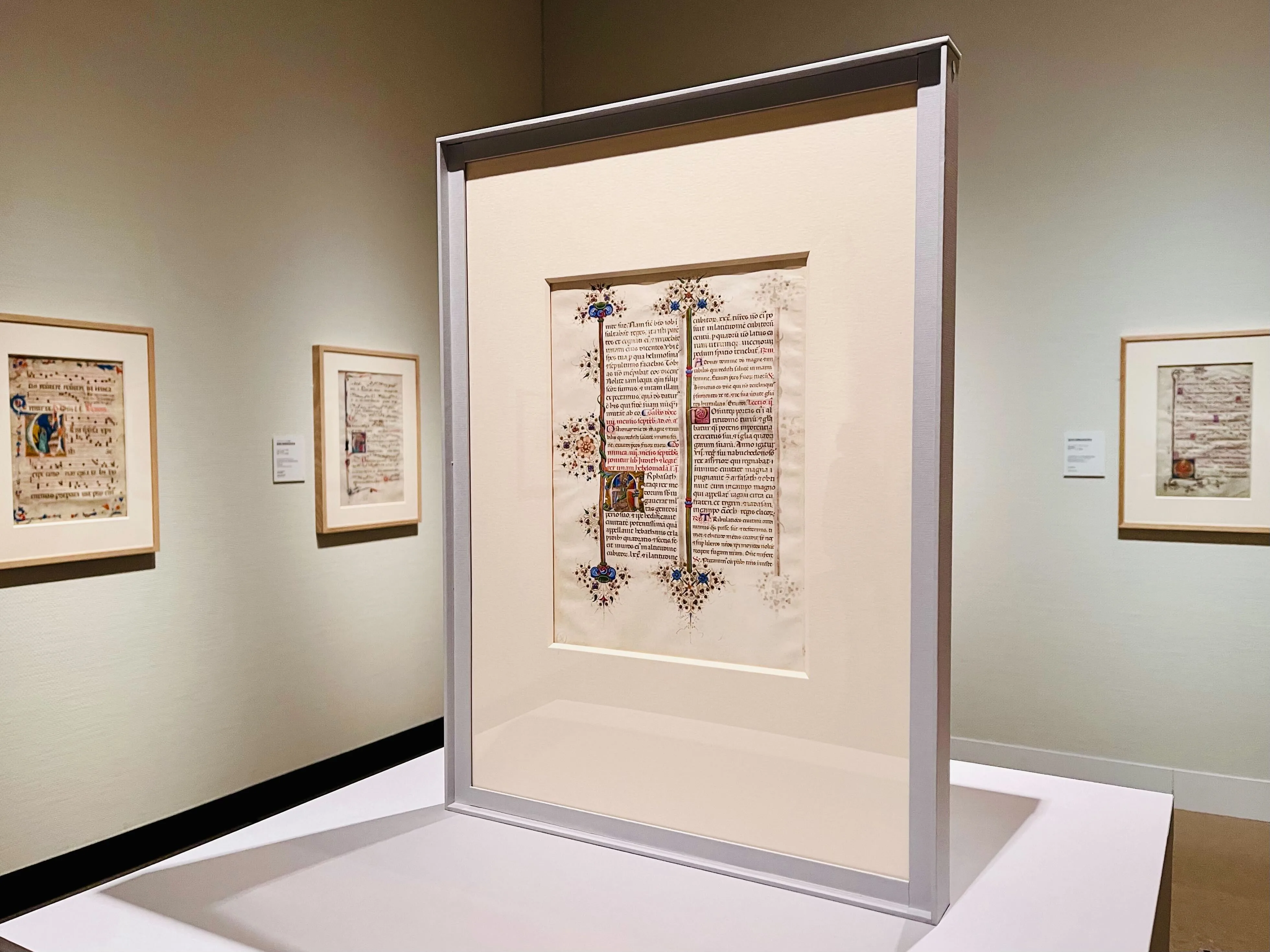 展示は、内藤コレクションを中心に、国内の大学図書館の所蔵品も若干数加えた約150点より構成。聖書や詩編集、時祷書、聖歌集など中世から近世初頭にかけて普及した写本の役割や装飾の特徴を見ていく。書物の機能と結びつき、文字と絵が一体となった彩飾芸術の美「中世の小宇宙」を堪能することができる。