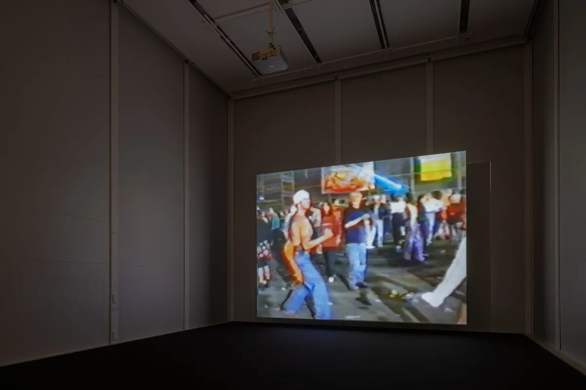 《Fiorucci Made Me Hardcore(10周年リマスター版)》については、「1970〜90年代半ばにかけてのイギリス特有のダンスミュージックの歴史を扱っている」という。本作は既存の映像作品を集めて編集したファウンド・フッテージで、巨大なサウンドシステムとともに展示されている。イメージの問題に一貫して興味を持ち続けてきたという作家は本作で、過去のノスタルジーについて映像と向き合うことで考えようとしたという。