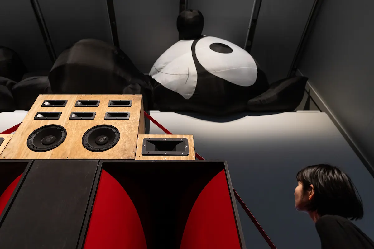「MARK LECKEY – FIORUCCI MADE ME HARDCORE FEAT. BIG RED SOUNDSYSTEM」 エスパス ルイ・ヴィトン東京での展示風景(2024) Courtesy of the artist and Fondation Louis Vuitton, Paris Photo credits: © Jérémie Souteyrat / Louis Vuitton