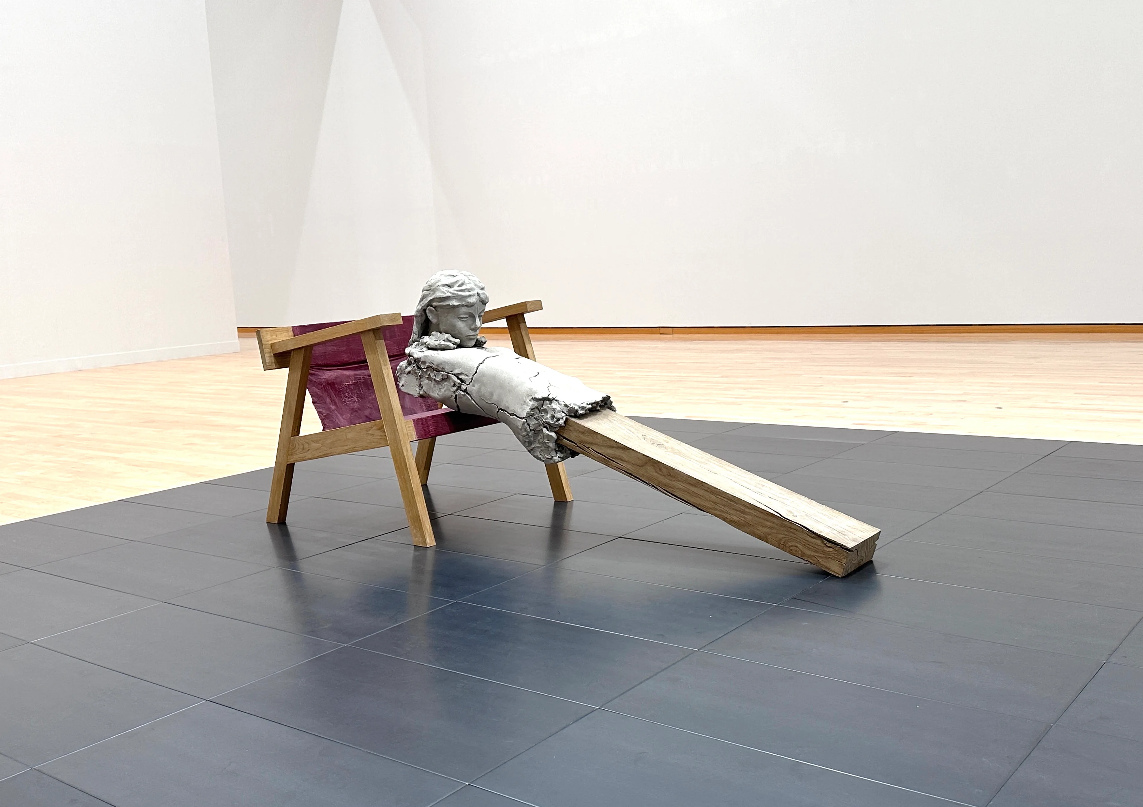 「5」のようにひとつの単語を作品化する、その手法によって作られたいくつかの作品のうちのひとつが、《執拗な不在を提供するために作られ、放置された部屋》(2022)だ。一見粘土に見えるが、じつはブロンズ製の本作。「犬」の言葉を根本的に表現する方法として粘土のような見た目を採用したのだという。