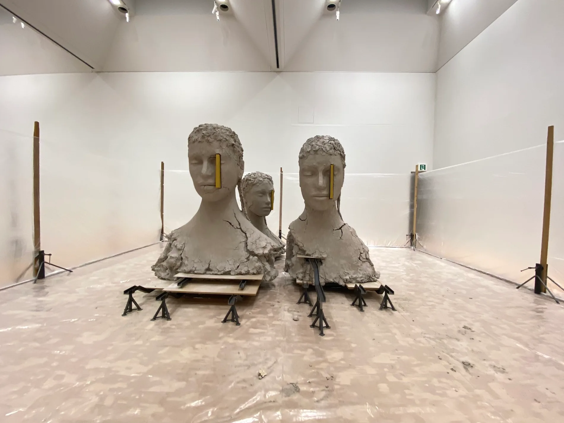 濡れた粘土のように見えるテクスチャだが、こちらもブロンズ製。強固な素材を用いて未完性のフラジャイルなイメージを作り出す。この手法はマンダースの代表スタイルだ。