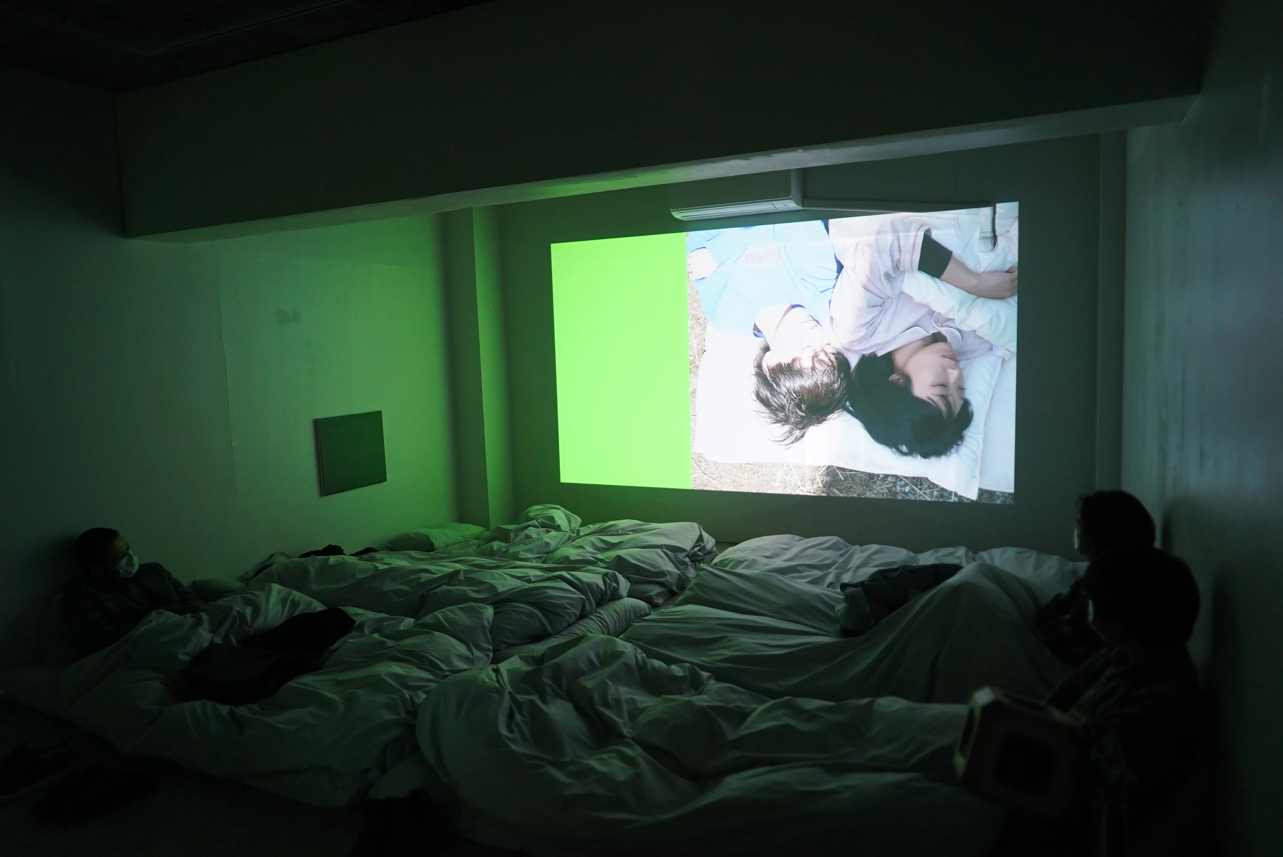 小宮:ありがとうございます。『線場のひと』と《繁殖する庭》はどちらも同性婚式を想起させるようなイメージを用いています。いまだ解決してない問題として、日本だと同性婚ができないということがあって、それを辿るといろいろなことにつながっていきます。とくに家父長制と帝国主義はこの国の根幹に横たわっていて、ジェンダーについて考えるうえで避けては通れない問題です。それを戦後日本が清算しないで放置してきたこと、そのうえで歴史修正主義的な動きが台頭していることを踏まえると、自分たちが実際に体験したことではなくても、風化しないように問いを投げかけていく必要があるという問題意識はあります。