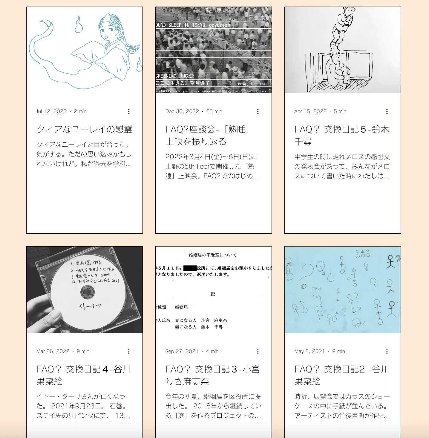 小宮:FAQ?はいま2人でやってるんですけど、メインのプラットフォームとしては、交換日記から始まって、そこから派生してイベントやトーク、ZINEの発行、過去の作家についてのリサーチやアーカイブなど領域横断的に活動しています。