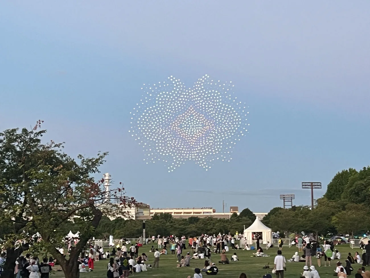 8月17日(土)18:55〜19:05に行われた、文化庁×GOMAxRED CLIFF《ひかりの世界・阪栄の火の鳥》。ドローン1000台が投入された