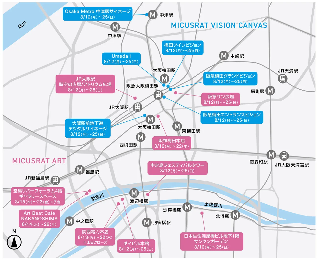 MICUSRATは、世界的に展開できる作品をアーティストと創作し、日本を文化芸術のグローバル発信拠点へと成長させていくプロジェクトで、昨年から規模も拡大している。今年のテーマは「はんえい」。ひらがなで表すことで、「繁栄」「反映」そして、2025年の大阪・関西万博に向けて機運が高まる大阪の「阪」を読み込んだ「阪栄」などのイメージを想起させ、文化芸術が「時代を”反映”し、世界の発展や”繁栄”を願うための批評性」を持ち合わせていることを表現している。