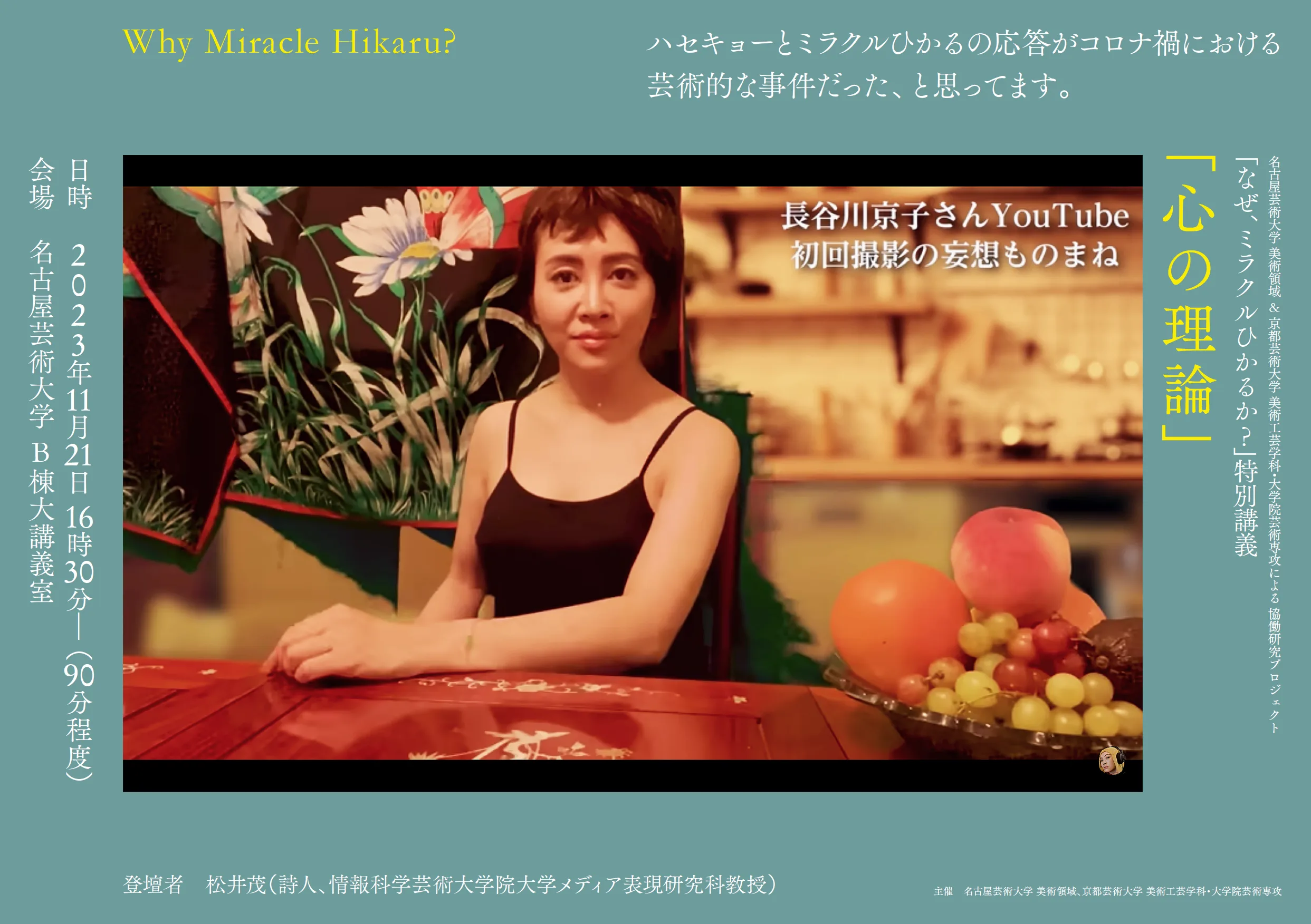 出演:ミラクルひかる(ものまね芸人)、田村友一郎(出展作家)