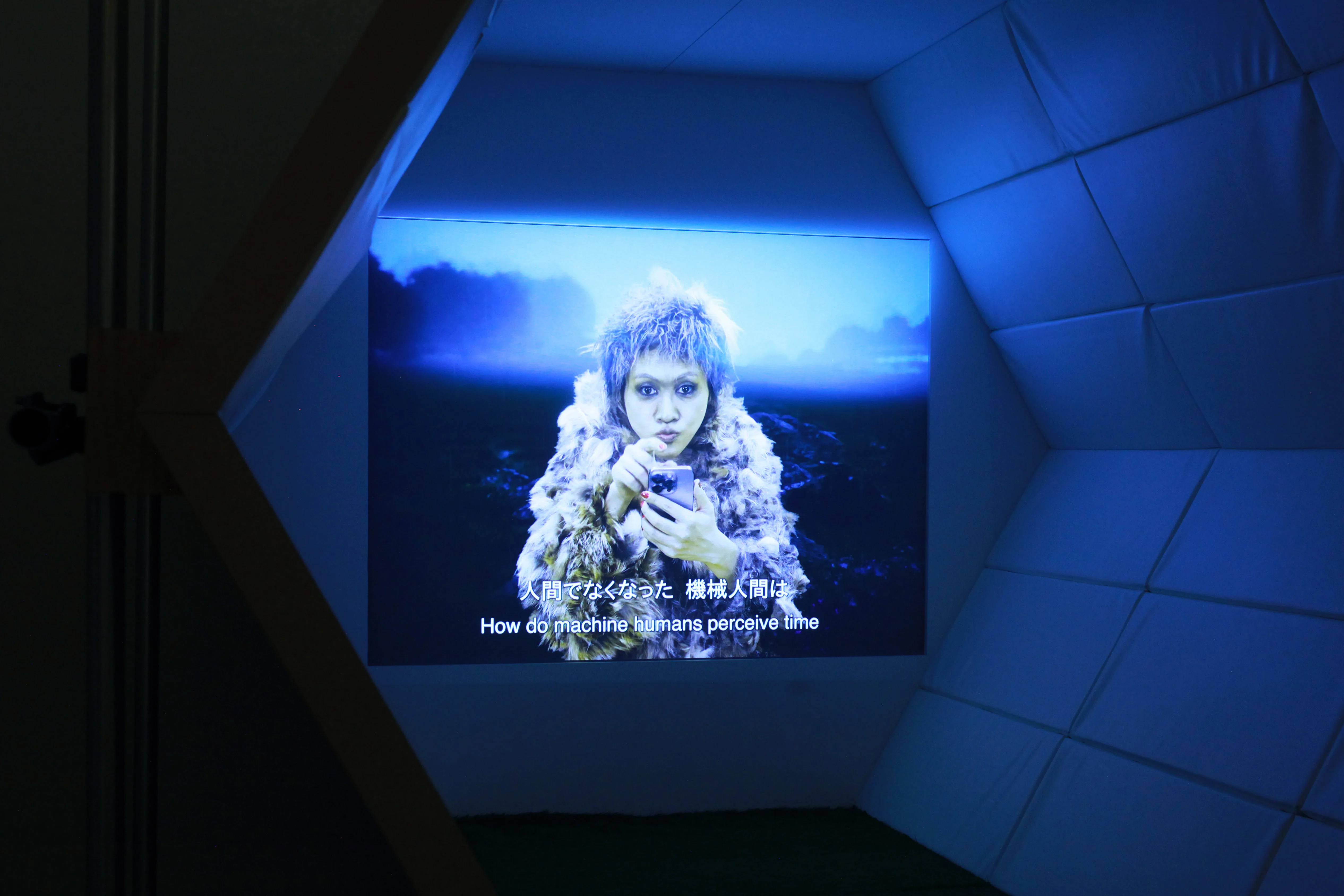 田村:現在、豊田市美術館で開催中の展覧会「未完の始まり:未来のヴンダーカンマー」で展示している僕の作品《TiOS》にミラクルさんに出演いただいています。骨とチタンを中心に、ジョン・レノンやiPhone、ゴルフ場やUFOなど様々なイメージが結びつき、広がっていく映像インスタレーション作品です。ミラクルさんには映像部分で、二足歩行を始めた猿人のルーシー、そして映画『LUCY』でスカーレット・ヨハンソンが演じていた主人公ルーシーを真似ていただきました。