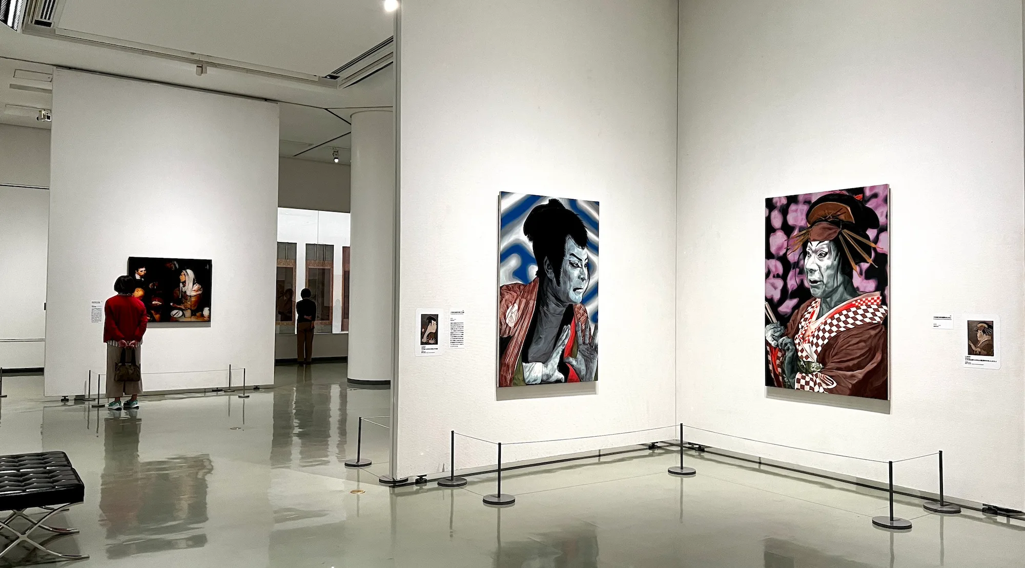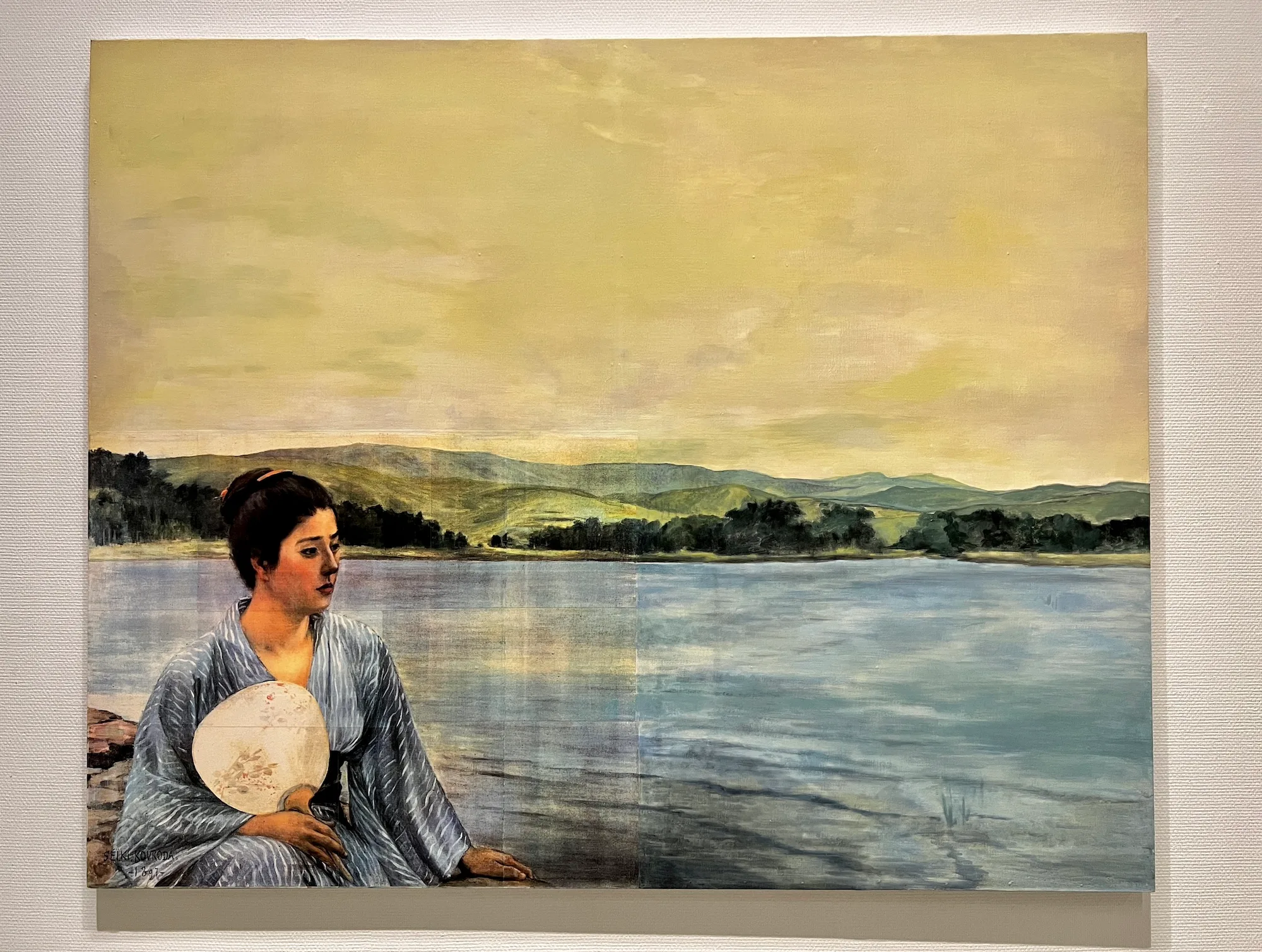 「イメージのひろがり」では、むしろわたしたちの意識はフレームの外に誘導され、黒田清輝の《湖畔》の背景に広がる風景が拡張されていたり、菱川師宣の《見返り美人図》が6方面から描かれていたりと、知った作品の未知の姿が並ぶ。