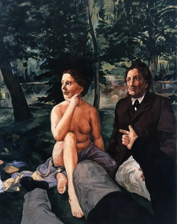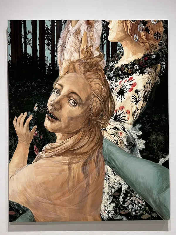 ところが、このシリーズでは絵画の空間構成が画中の人物のものに置き換わっている。ボッティチェリの《春(プリマヴェーラ)》では右側のゼフィロスの、マネの《草上の昼食》ではターバン風の帽子を被った男の、ベラスケスの《ラス・メニーナス》ではマルガレーテ王女をあやす侍女の視点にそれぞれなりかわっているという具合だ。