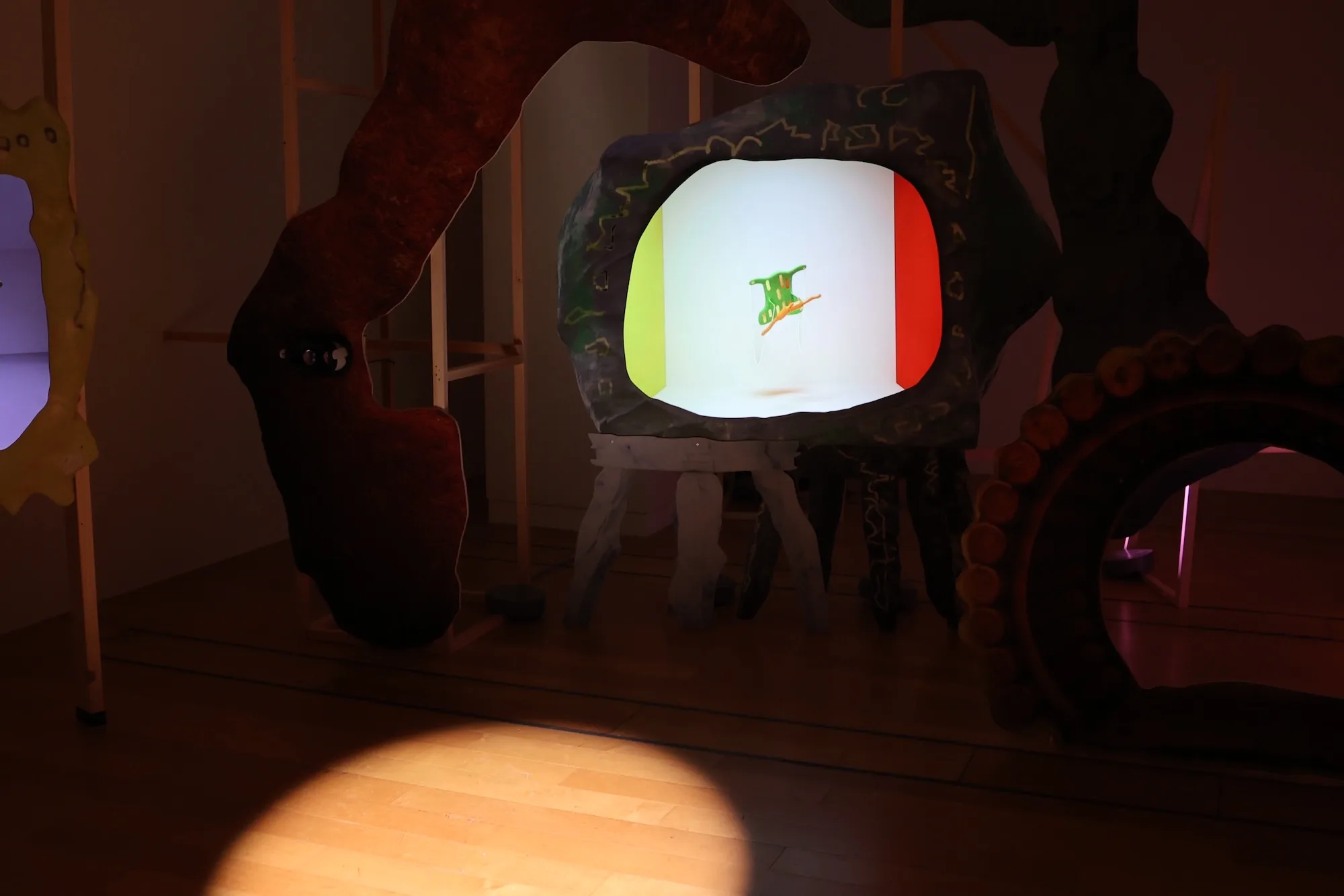 展示は、インターネット上のハイパーICC「へんしんエクササイズ・シアター」とも連動し、オンライン上でキャラクターを操作したり、照明を動かすなどの体験もできる。