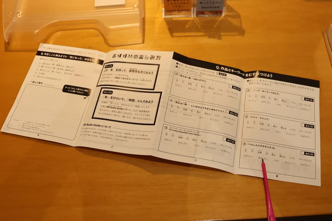 「鑑賞しながら、キーワードを選び、作品を分解していくことで、子供たちの好奇心を深堀するワークシートを会場で配布しています。物事の見方や気づいたことを書くことで、さらに興味関心が広がる。夏休みの自由研究として提出できるほど、密度の濃いワークシートです」(鹿島田)