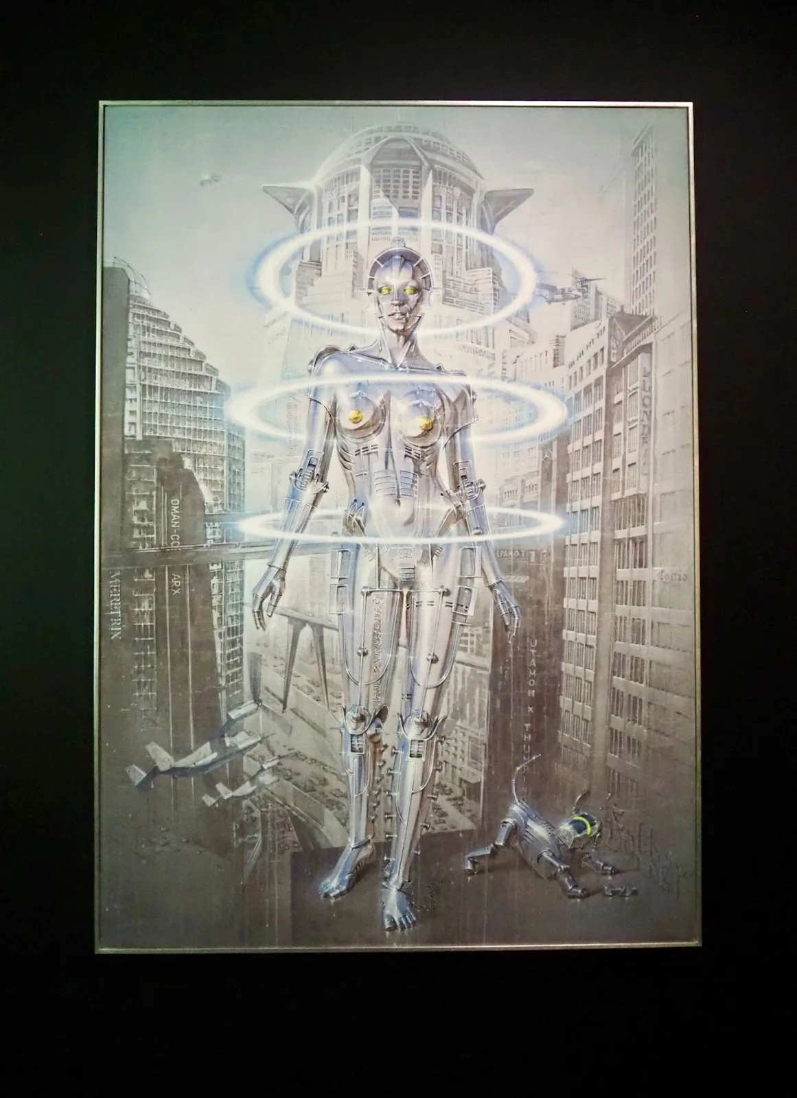 空山がロボットをモチーフにした《Sexy Robot》を描き始めたのは1978年だった。1926年の映画『メトロポリス』に感化されてのことという。この映画では、アンドロイドの女性が最後に火あぶりにされる。ロボットと人間はどう違うのか。あるいはどう同じなのか。ロボットに対する根本的な向き合い方が問われる映画だったのだ。そして、空山が描いた《Sexy Robot》は外観こそメタリックだが、じつに人間的に映る。姿形や仕草が人間的だからであり、性の根源に迫っているからだろう。昨今話題のAIは、ロボットにもこれから多く組み込まれることだろう。映画『メトロポリス』による100年前の問題提起が、空山の作品を通じて改めて浮かび上がってきたことに気づく。さて、これから現代人たちはロボットとどう向き合うべきなのか。そんなことを考えさせられる。