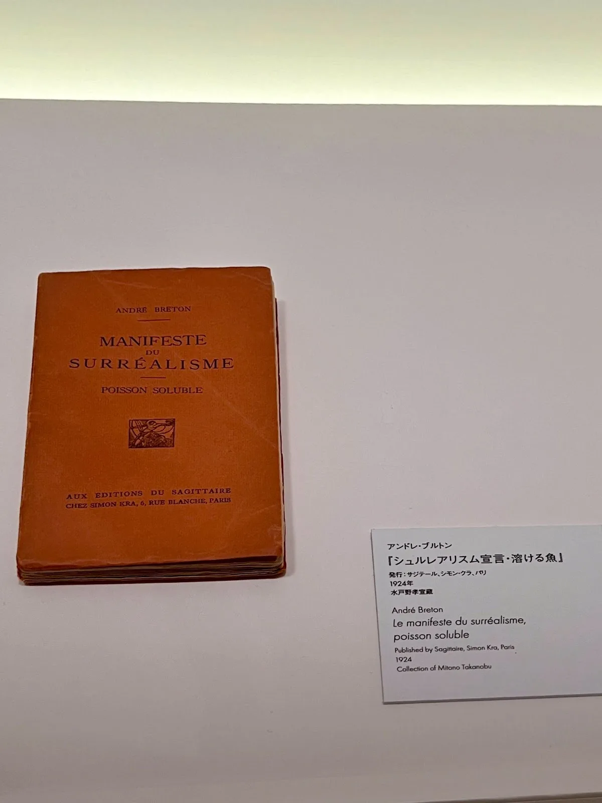 会場には、木製メトロノームの振り子部分に人間の目を印刷した紙を貼り付けたマン・レイの《破壊されないオブジェ》や、裸婦なのか動物の姿なのかが判然としないサルバドール・ダリの《姿の見えない眠る人、馬、獅子》などが展示されていた。