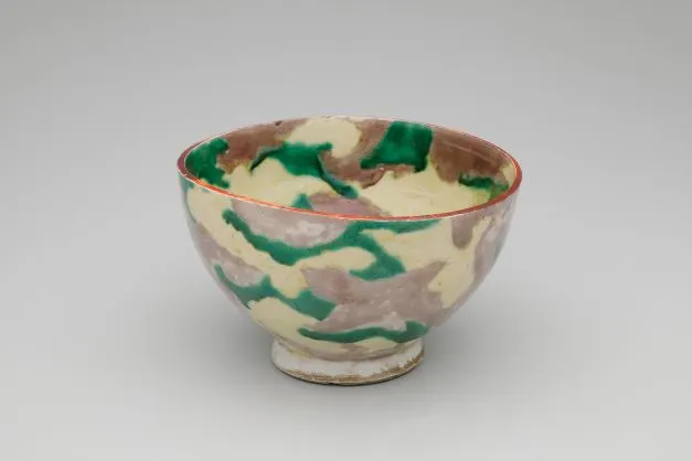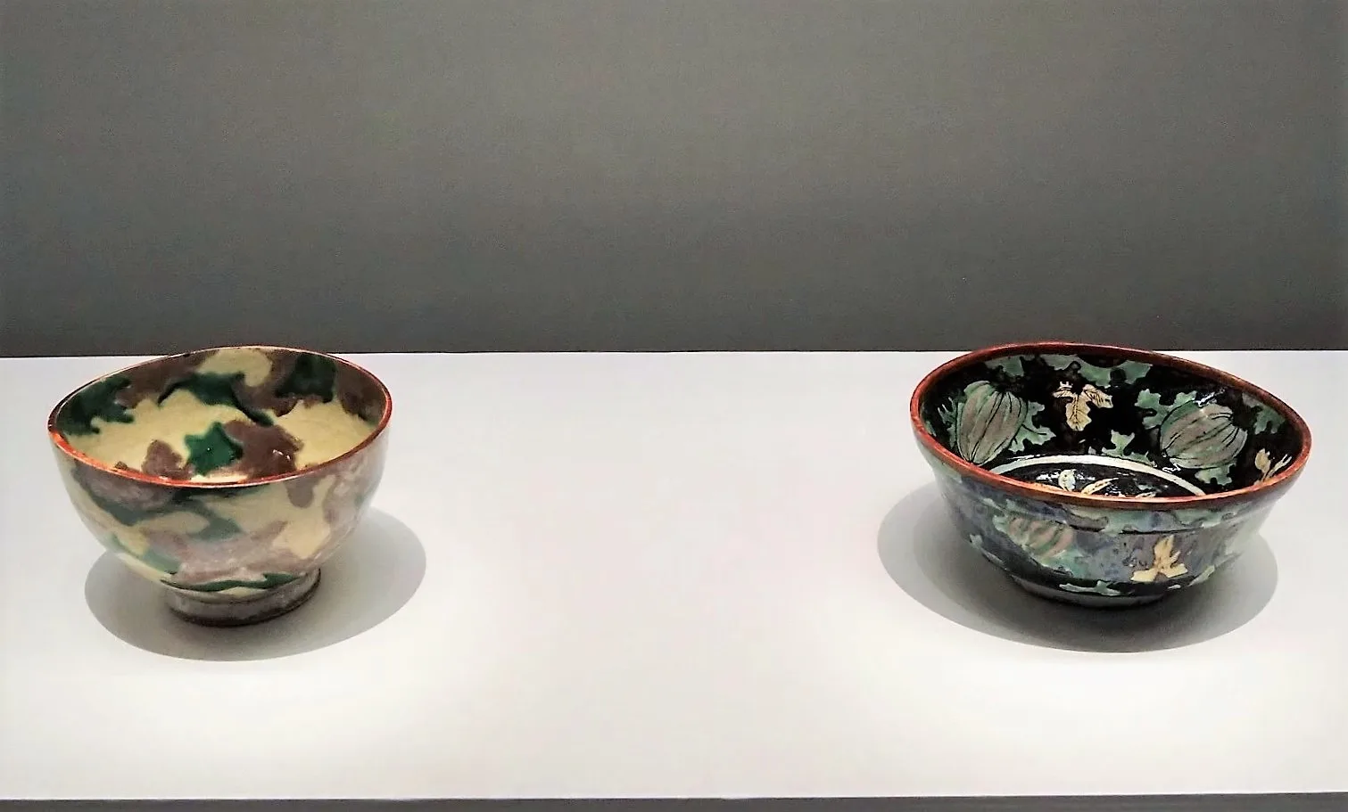 木米の本拠地は京都だったが、文化4〜5(1807~08)年に金沢に招かれて春日山窯を開き、活動していたことがあった。その作陶の成果である《三彩鉢》と《黒釉三彩瓜文鉢》は、中国・清の景徳鎮窯の素三彩を手本にしているという。ただし、《三彩鉢》の器形は、朝鮮半島の造形に由来する高麗茶碗からの着想ではないかというのが、同展での指摘である。実に興味深い。筆者は、三彩の美しい色合いが魅力的なこの器に何か木米特有の表現が出ていることを感じながら鑑賞したのだが、ここでは木米は「自由」を得ていた。さまざまな分野を研究し、組み合わせてでも自分がいいと感じた表現を積極的に取り込んでいこうとしていたのだ。