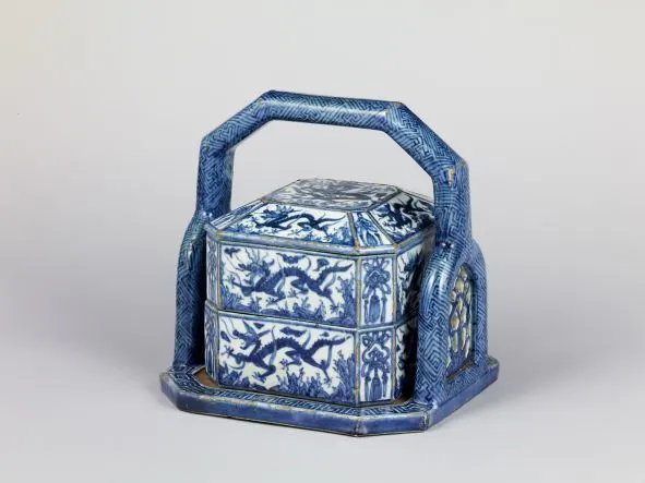 「染付」は、中国陶磁器の代表的な技法の一つである。龍の文様は陶磁器製の手提げの重箱にあしらわれているということもあって、なかなかの気品を漂わせている。それゆえ、長く見ていると愛でたくなってくる。