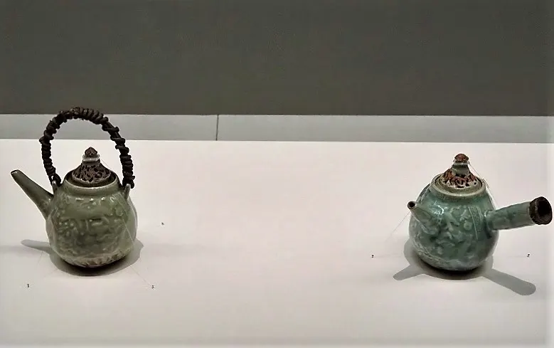 木米が制作した煎茶の急須も実に愛らしく、バラエティーに富んでいた。造形も色合いも、ただの中国陶磁器の写しという次元を超えた自由さを感じる。木米の急須を使って煎茶を飲んだ文人たちは、心が楽しさで満たされたのではないだろうか。