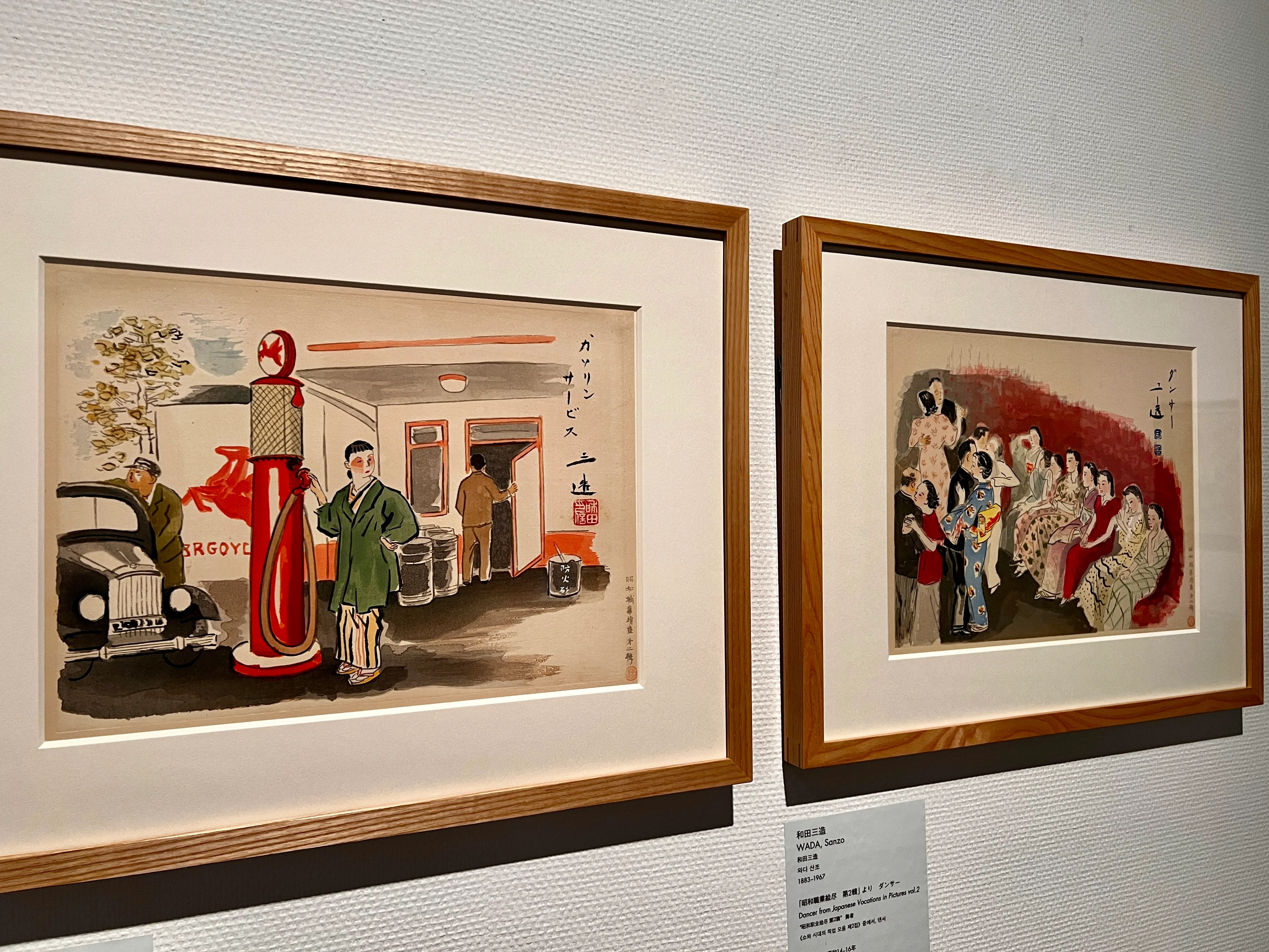 新収蔵作品である和田三造 「昭和職業絵尽」シリーズは、昭和期の働く人々をとらえた作品で、少しずつ消えゆくモダンな都市生活や、戦争のために働く人々などが生き生きと描きこまれている。当時の世相を色濃く反映した作品だ。