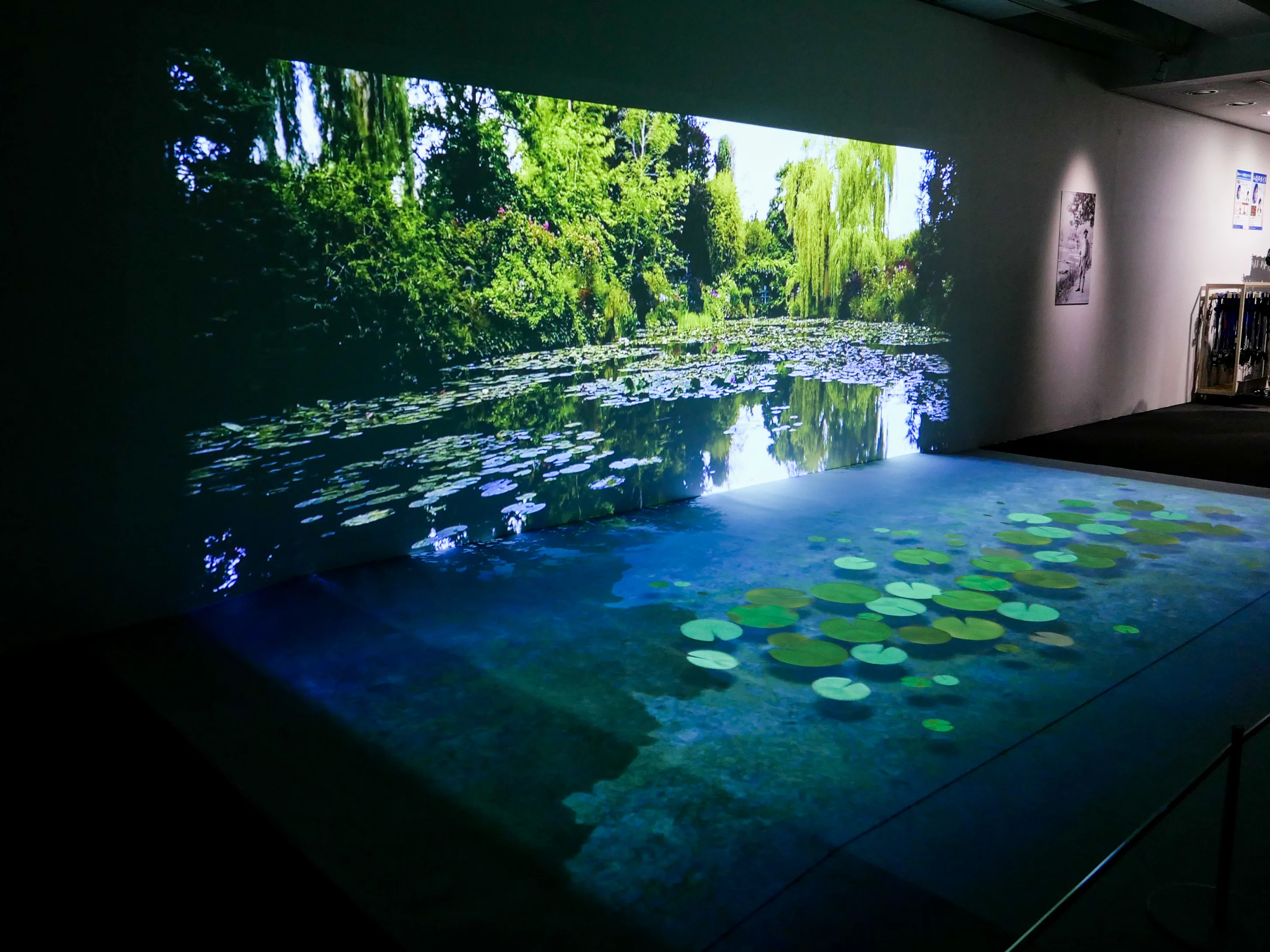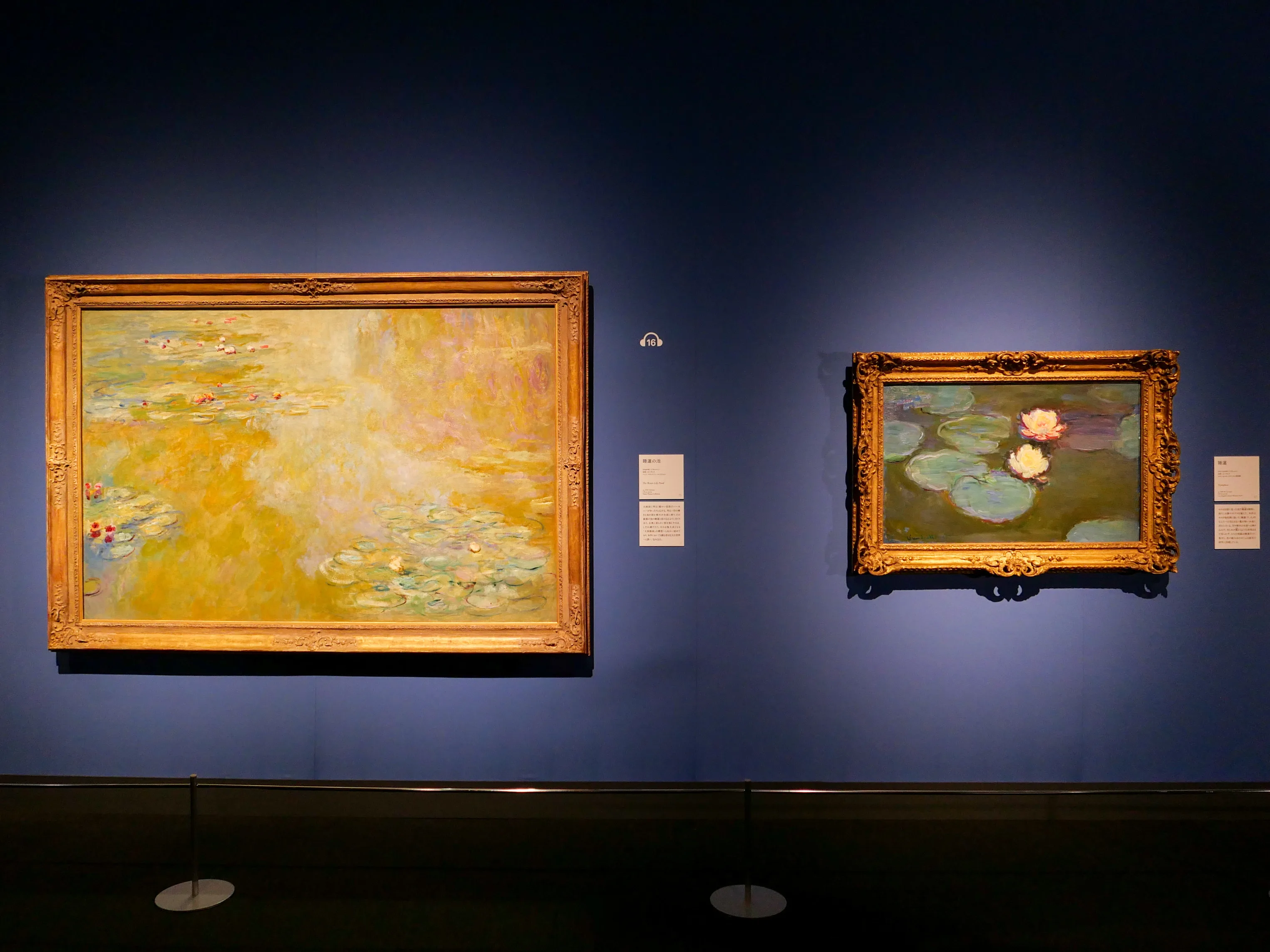 会場風景より、左から《睡蓮の池》(1918年頃、ハッソ・プラットナー・コレクション蔵)、《睡蓮》(1897-98年頃、ロサンゼルス・カウンティ美術館蔵) 撮影:編集部