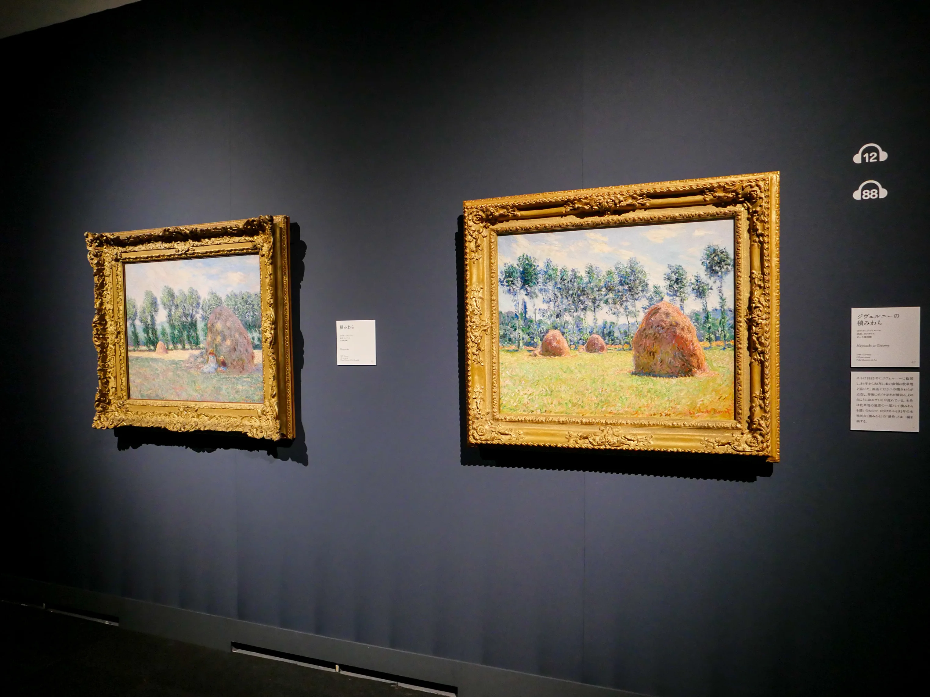 本展のハイライトを選ぶとすれば、複数の連作が並ぶ4章「連作の画家、モネ」だろう。42歳のモネが移り住み、終の住処となったフランスのジヴェルニー。自宅付近の秋の風物詩であり、モネが体系的に連作の手法を実現した「積みわら」のシリーズからも4点が出品される。