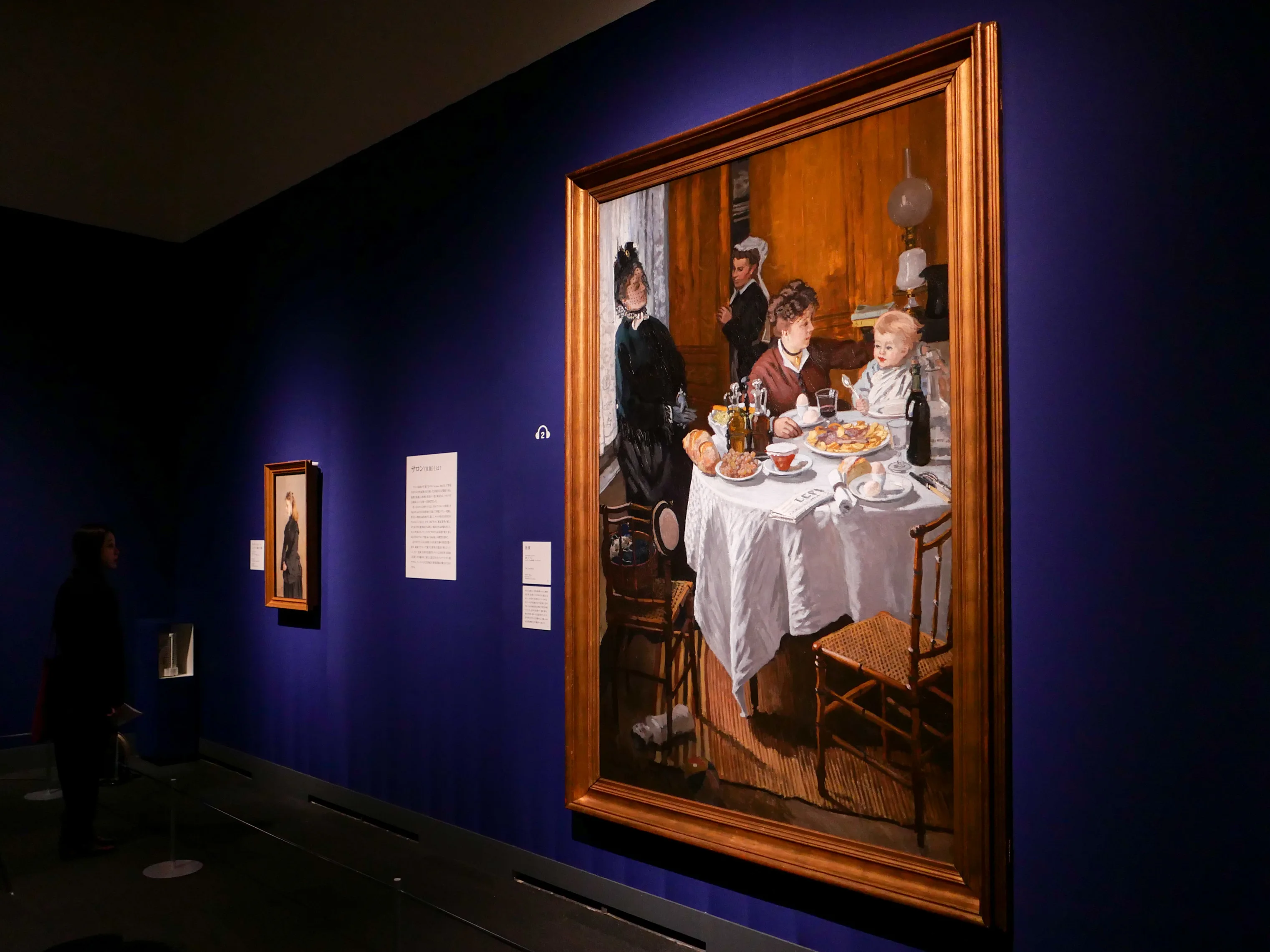 印象派以前のモネの作品を紹介する第1章の見どころは、日本初公開となる大作《昼食》だ。モネが家族を描いた本作はフランス国家が主催し、17世紀半ばから19世紀後半まで続いた伝統的な公募展「サロン(官展)」の落選作でもある。フランスの芸術家にとっては唯一の登竜門だったサロンだが、1867年から審査基準が厳しく保守的になり、それまで何度も入選をしていたモネはこの意欲作《昼食》で落選となった。伝統的な絵画と決別し、印象派の道へ進む転機となった作品と言えるだろう。