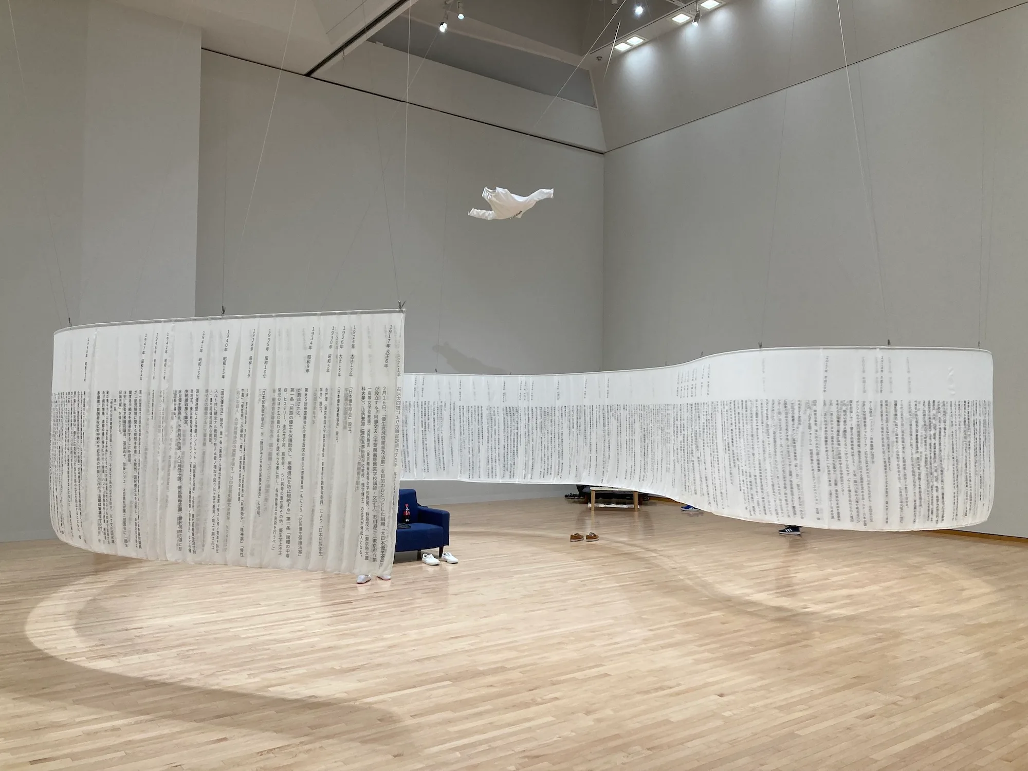 また、旧優生保護法を中心とした歴史とそれに対抗するような障害者運動の100年を、自分の身体に染み込ませるために年表にした。鑑賞者が歩きながら読んでいくうちに「内」と「外」が入れ替わるのは、権力による構造を個人の連帯で変えることができるのではないかという思いからだという。