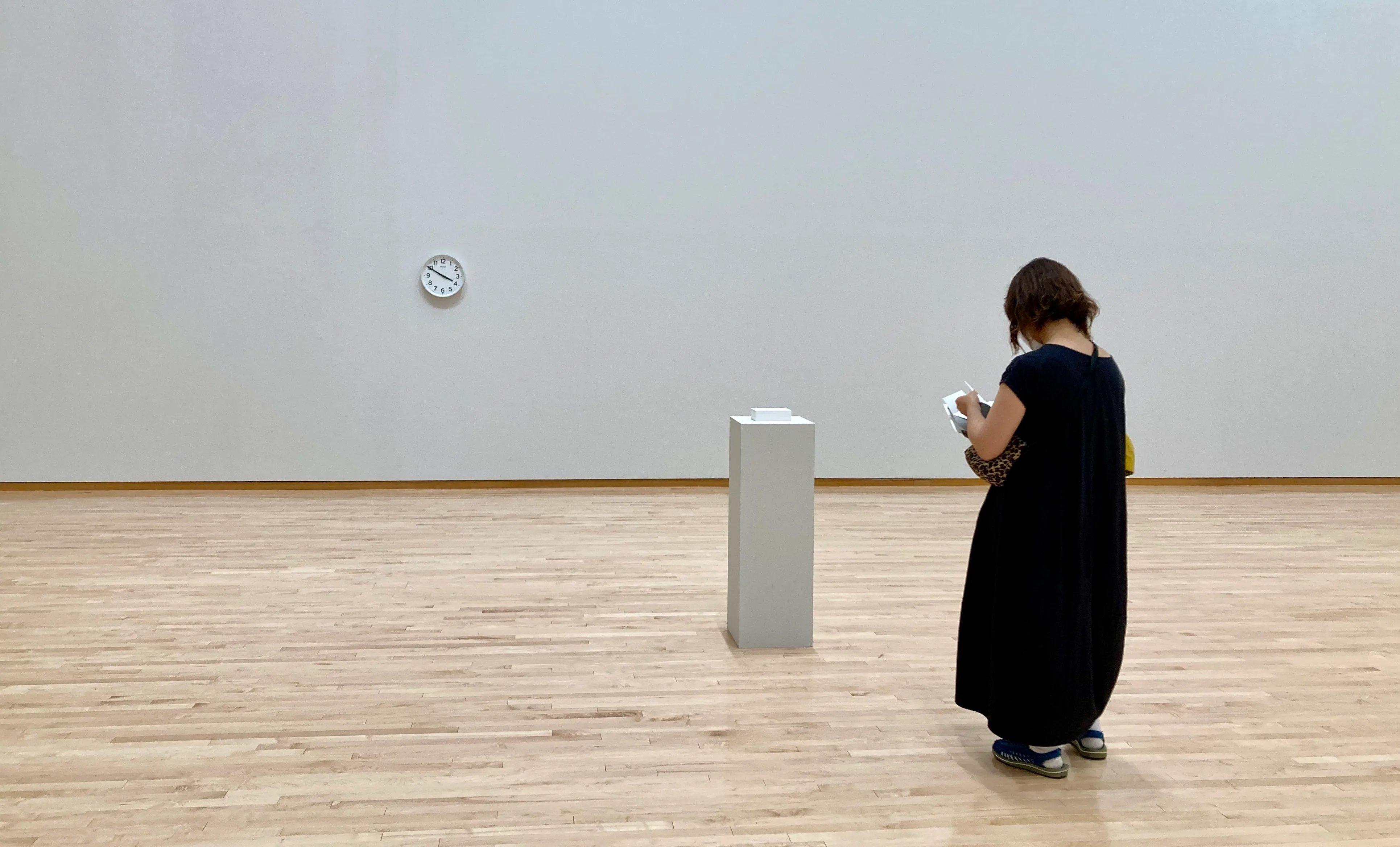 「展示期間が終われば、あの時計は展示室から美術館内の元々あった部屋に戻ります。ただ、人(ひと)ではない〈美術館〉に態度を共有してもらうというのは実際にはどういうことなのでしょうか。まだ私自身もよくわかっていませんが、少なくとも、時計は元の部屋に戻っても、1日に2回、〈3:50あるいは15:50〉を指すことだけはわかっています。日付に特定の意味が付されたときのように、時間に特定の意味を与えることで、日常の中に忘却に抗う契機をつくりだす。〈美術館〉は、1日に2回示される〈3:50あるいは15:50〉に、関東大震災の朝鮮人虐殺という出来事を、そして、それと切っても切り離せない日本の植民地主義のことを思い出すのでしょうか」。