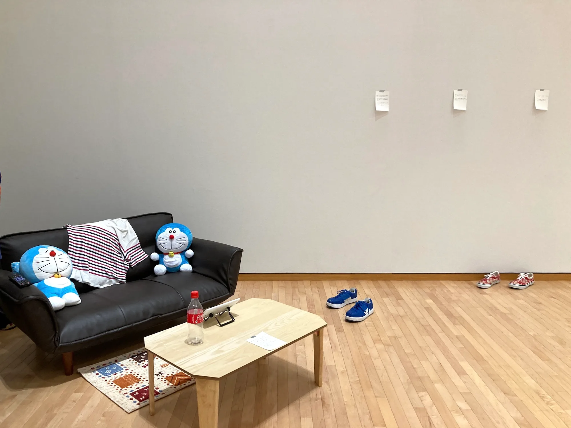 もうひとつ《私はこの世界を司る。あなたは宇宙に存在する要素》では、作品を作ると決めて日記を書き出した。日記形式のお話を作るために実際の日記を書いた。その日記の内容のために実際の行動をコントロールしたという。様々な虚実のバリエーションを、仮設を意味するインスタレーション空間で体験してほしい。