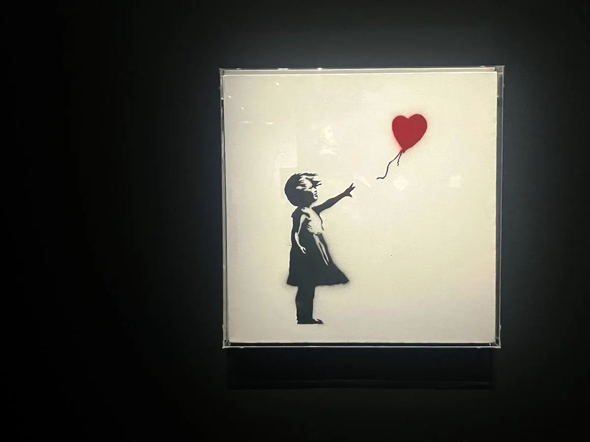バンクシーの著名な功績のひとつに挙げられる《ガール・ウィズ・バルーン 少女と風船》(2004)がある。この作品が2018年10月5日イギリスのサザビーズで落札された直後、バンクシーは《Love is in the Bin(愛はごみ箱の中に)》とタイトルを改名。アート史上初、オークションの最中に制作された作品として世界中でニュースとなり、世の中に「バンクシー」の名を広く知らせることとなった。