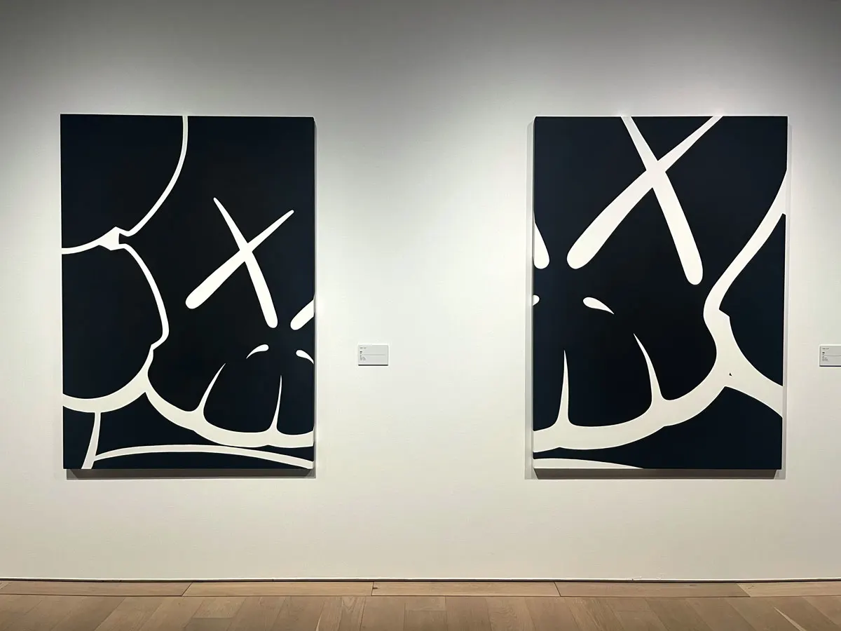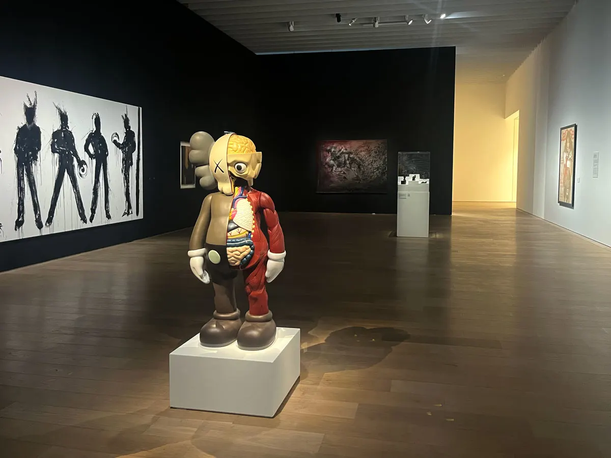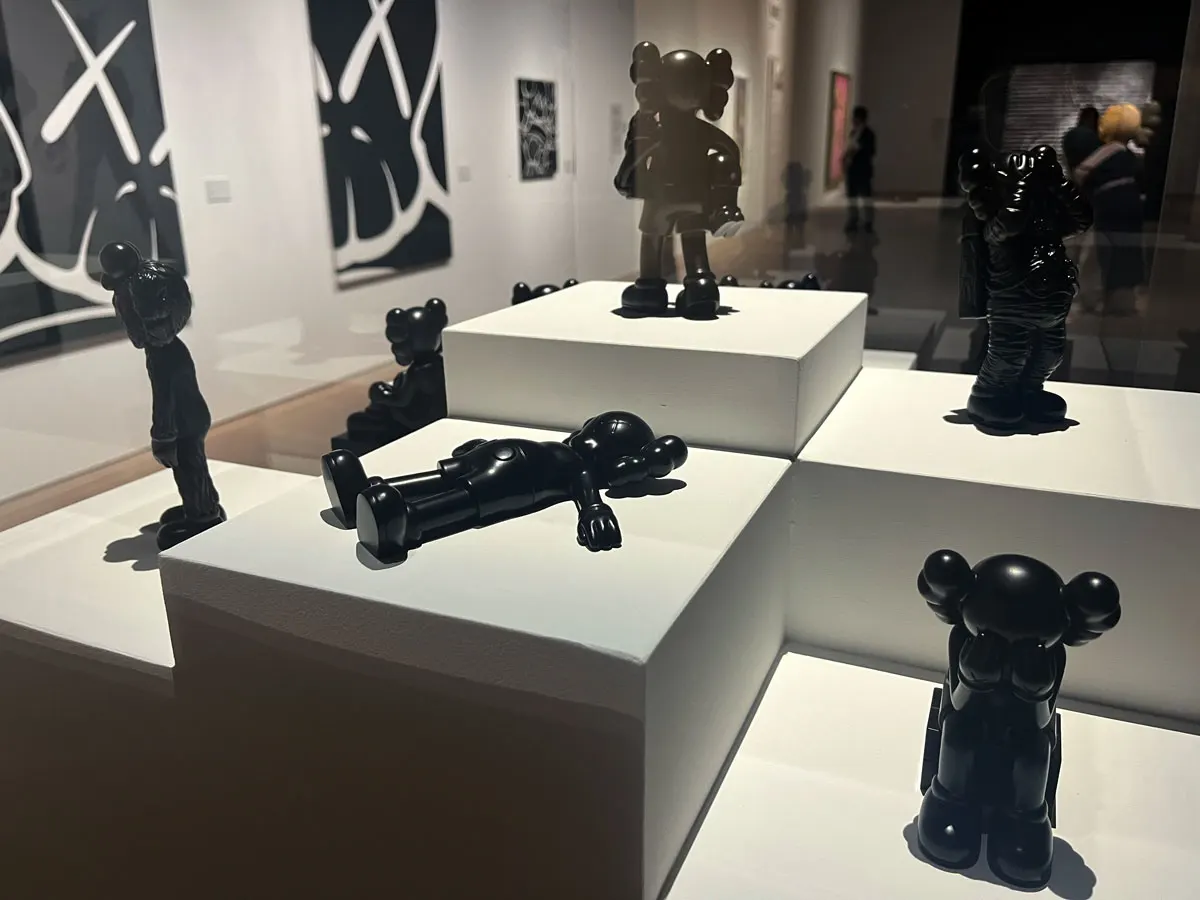 バツ印の目をしたキャラクター「コンパニオン」は、様々なサイズの作品で知られている。《カウズ・ブロンズ・エディション #1 -12》(2023)は、キャラクターを様々に表現し、人生の中でのいろいろな感情を描き出している。寝転がっているコンパニオンは、マラソン後に疲れているようにも、日向ぼっこしているようにも見えるかもしれない。