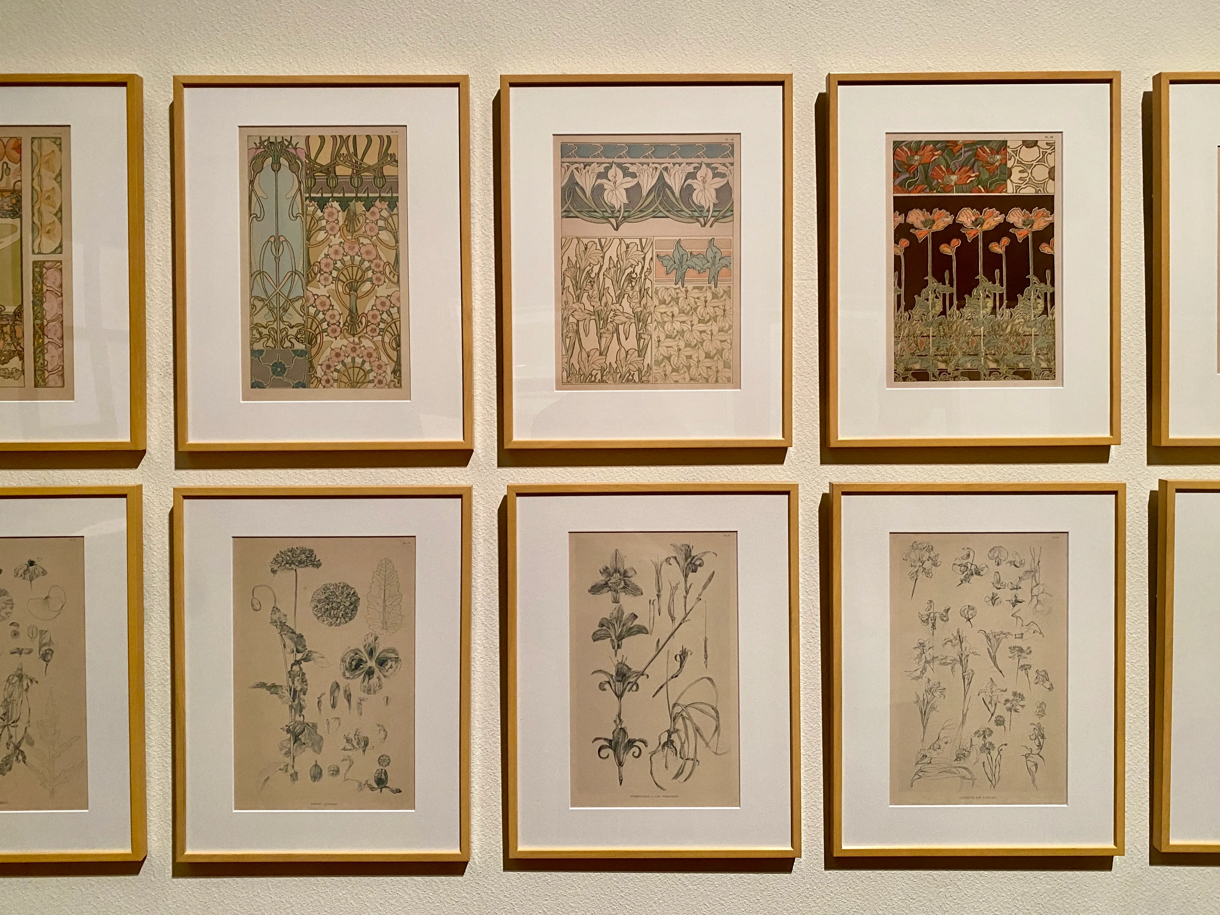 たとえば『装飾資料集』(1902、画像下)は、ミュシャの装飾デザインを紹介する図案集であるが、本作は彼の「自然から学ぶ」過程を示す資料とも言えるだろう。ケシの花を描いたスケッチには、解体された花弁や雄べ、葉が枯れた様子までが詳細にスケッチされており、それらがデフォルメされたパターンとして再創造される。ミュシャの作品に独特のリズムを与えている、うねるような髪の表現や草花をモチーフとした装飾は、このような植物の持つ形態・ダイナミズムへの関心から生まれたものなのかもしれない。