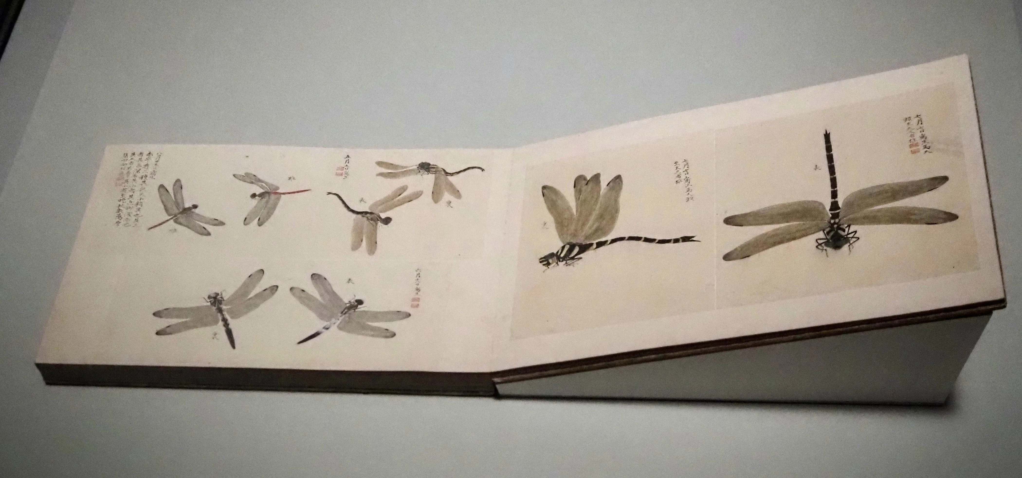 江戸時代末期に伊勢国の大名、増山雪斎が描いた《虫豸(ち)帖 夏》は、まるで図鑑のような写実的な描写が特徴だ。雪斎は相当な虫好きだったそうだが、絵のうまさも半端ではない。数種類のとんぼの姿をさまざまな視点でとらえ、それぞれを細密に、そして丹念に描いている。卓越した観察眼を持っていたのも間違いないだろう。