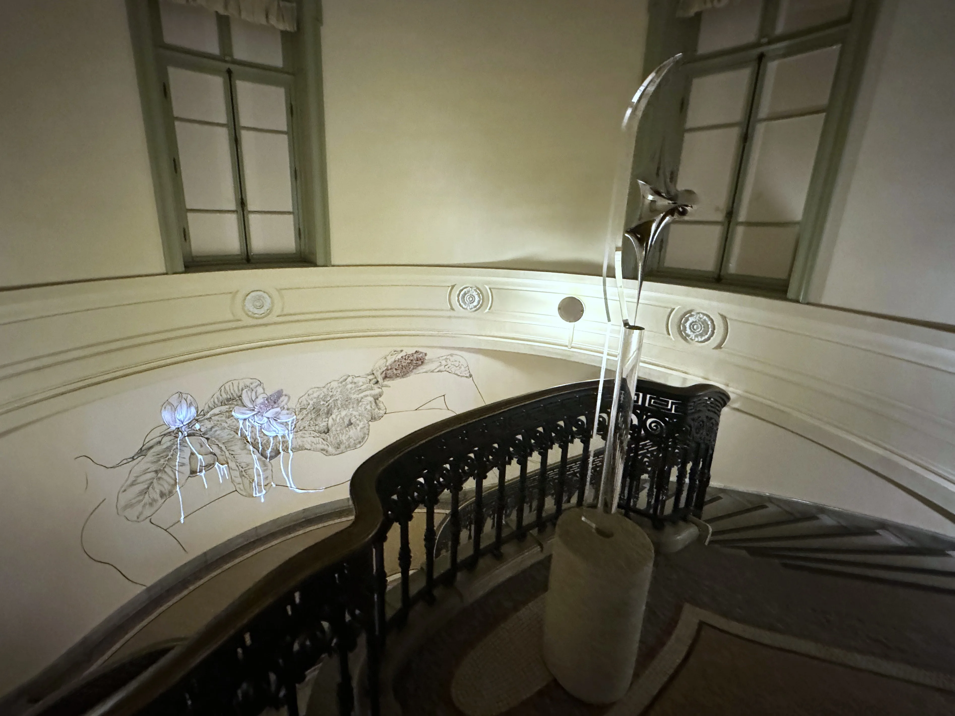 束芋によるデジタルインスタレーションは、館内に2つある階段の各壁面に展示。異なる作品を展開しているので、どちらも見逃さないでほしい。