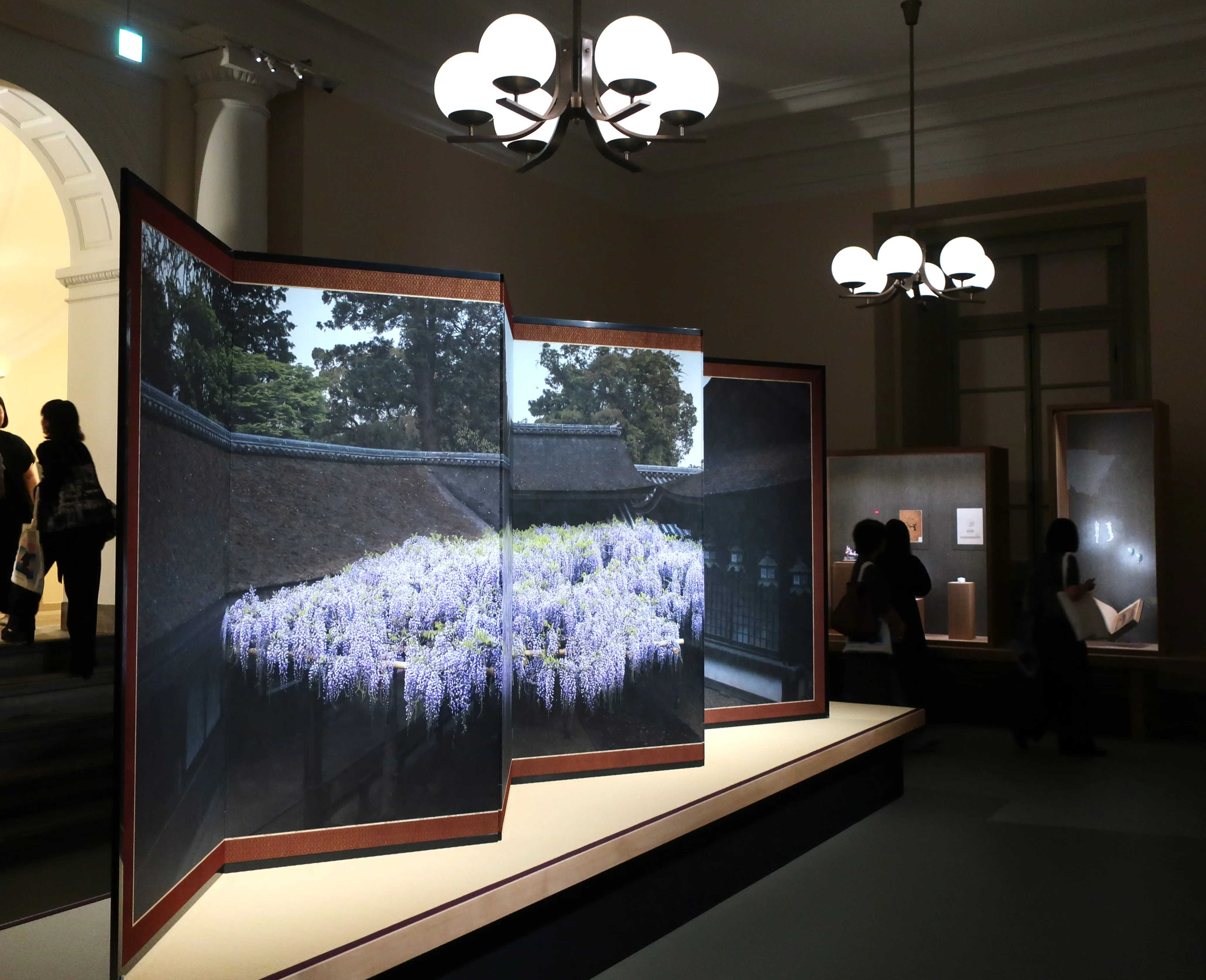 同様に、動物や植物、鳥や昆虫などもカルティエのクリエイションと日本美術の双方に共通するモチーフだが、展示室には杉本博司による藤の花の屏風が象徴的に置かれているのも印象的だった。