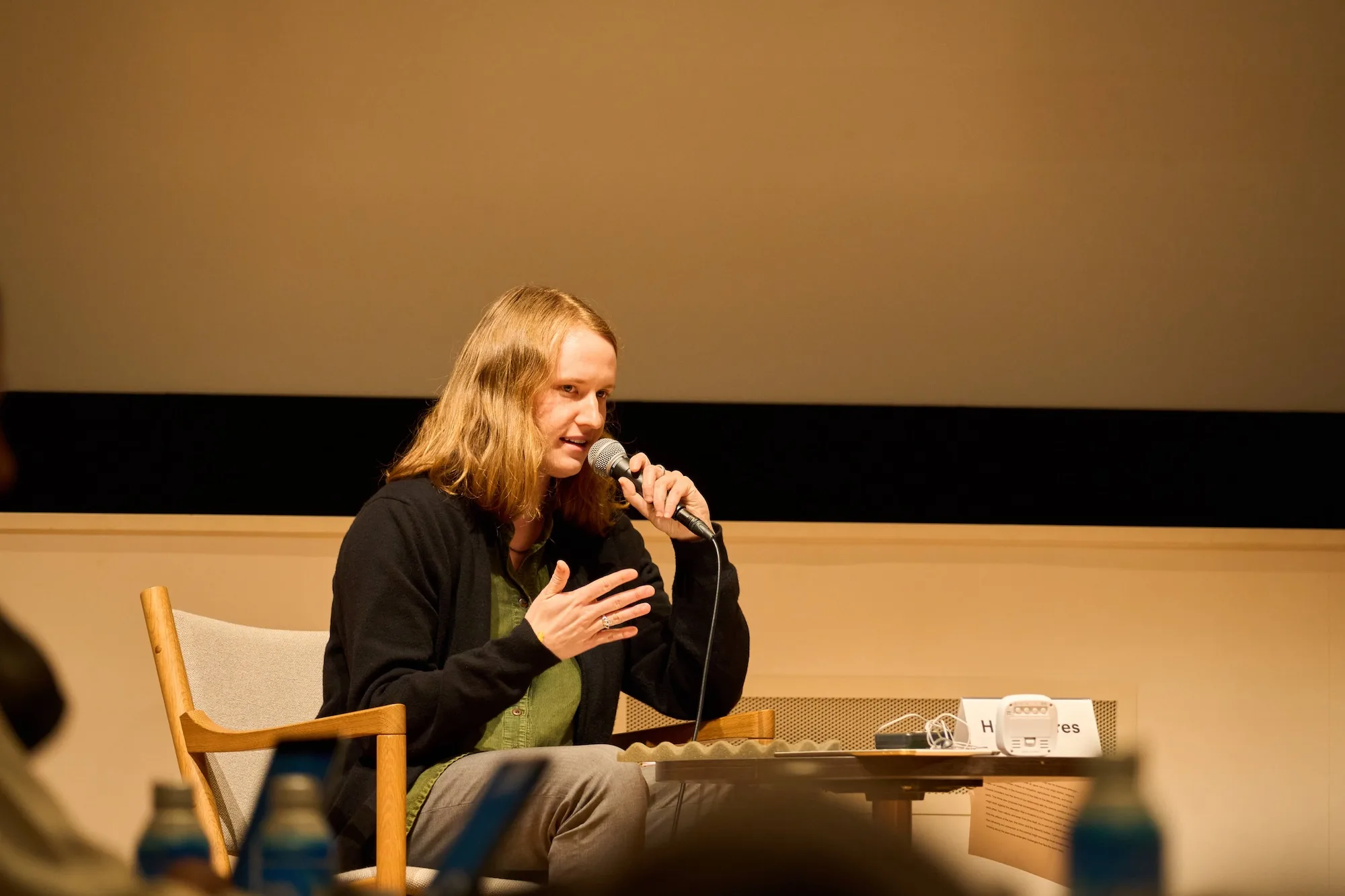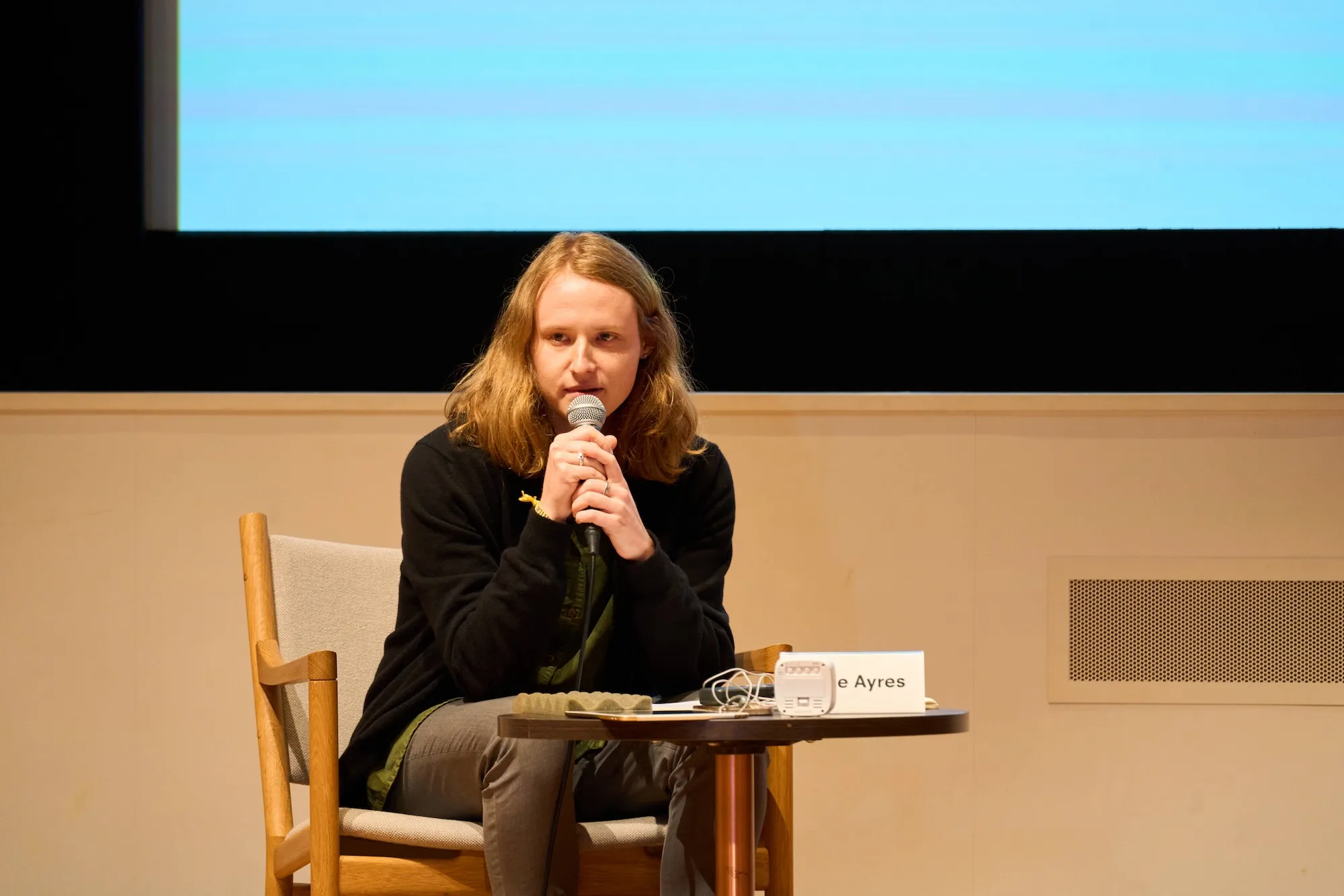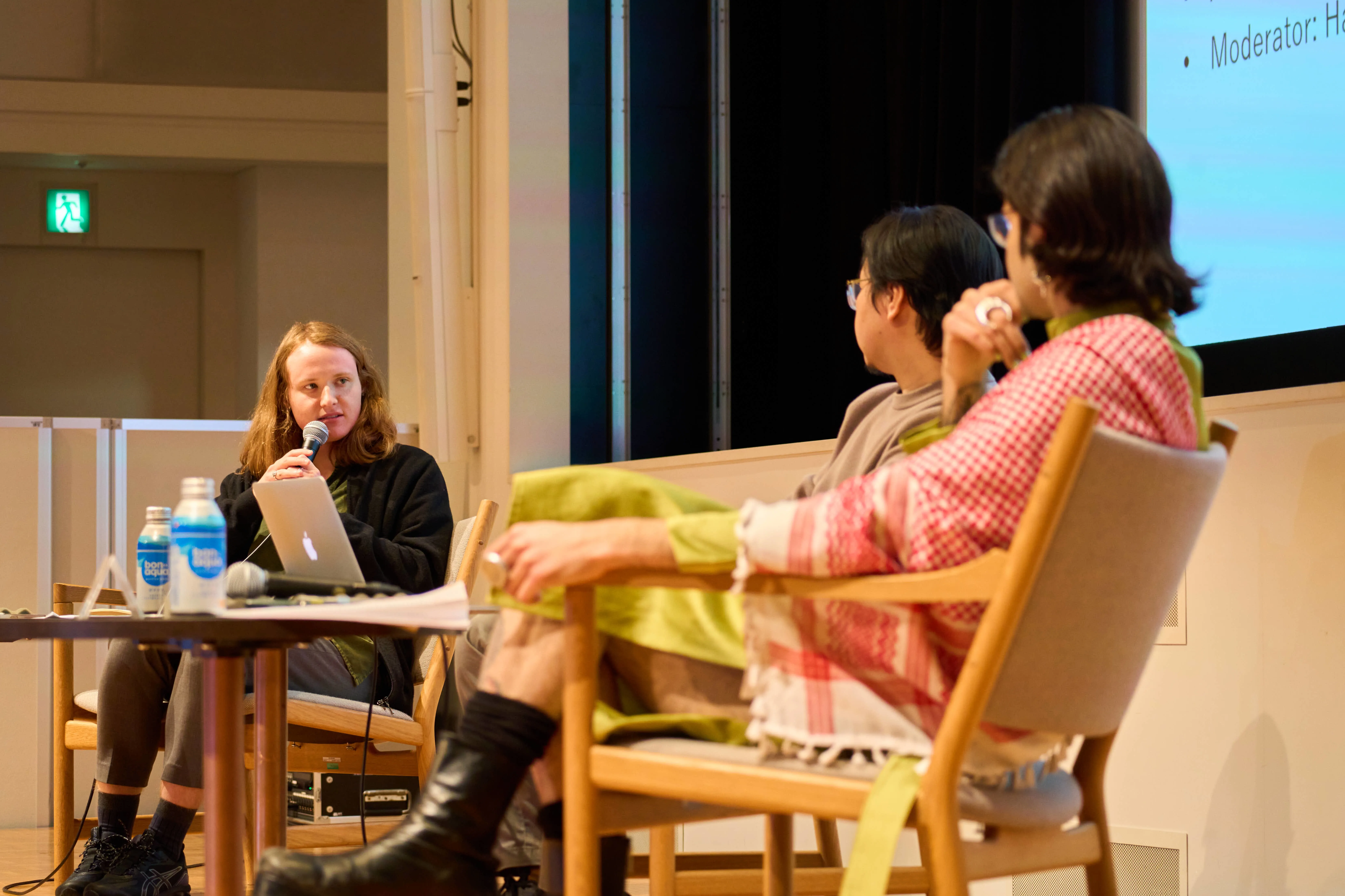 後半には、ヘイリー・エアーズがモデレーターを務め、ディスカッションが行われた。ローカルとグローバルの文脈でのリサーチをどのようにバランスをとって進めるか。また、展覧会を開催する際に、サイトスペシフィックであることを心がけるか。そういった質問がエアーズから提示され、まずスー・ウェイが答えた。