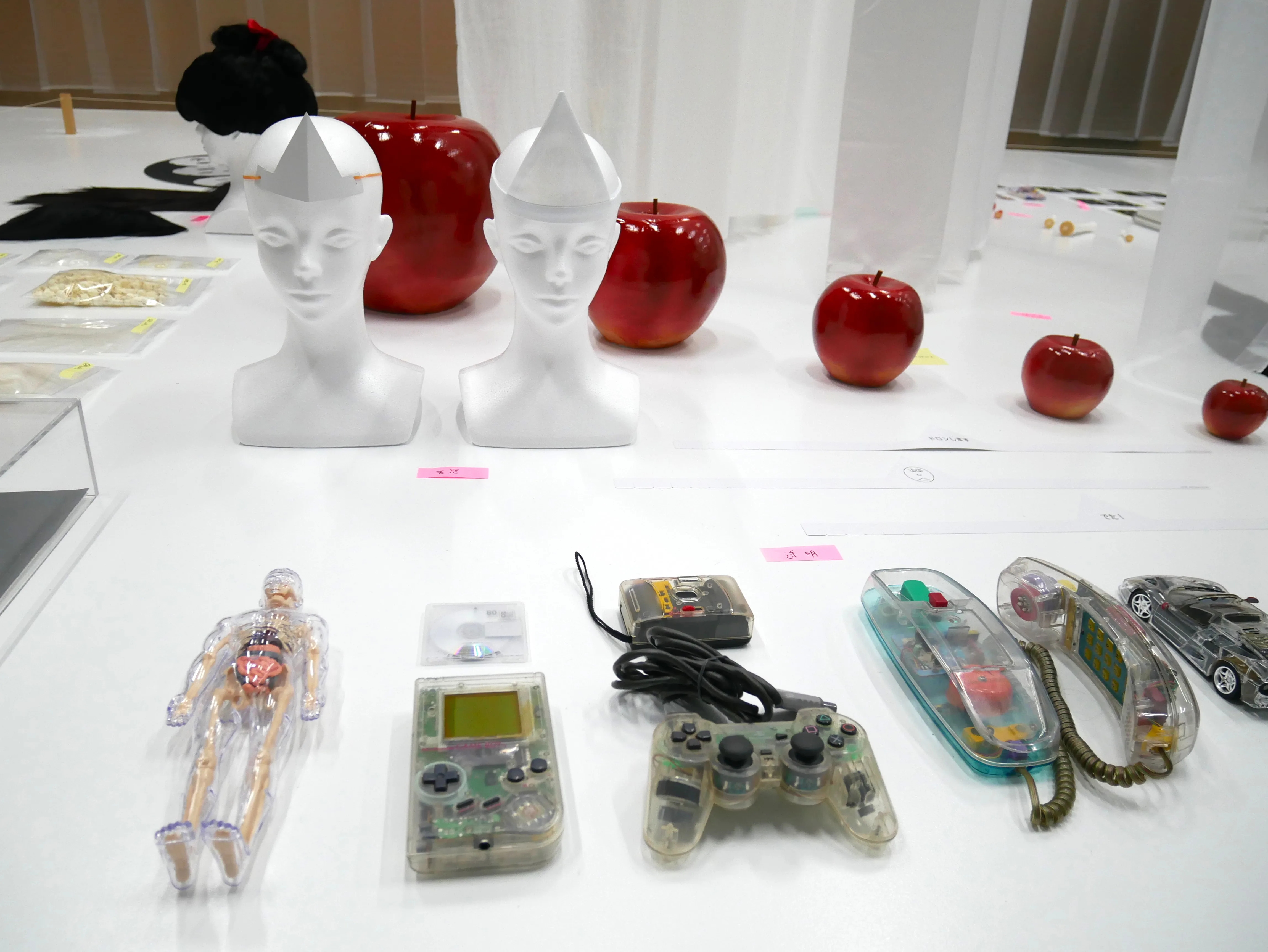半透明のビニールでおおわれた「オバケ研究所」に入ると、オバケ研究員たちの研究成果が発表されている。Allright Graphicsによる、オバケっぽいものを集めたコーナーがその一角にある。オバケとデザイン志向を結びつけた展示を通して、子供たちが日常のなかでオバケを探す視点を身に着けてほしいという。