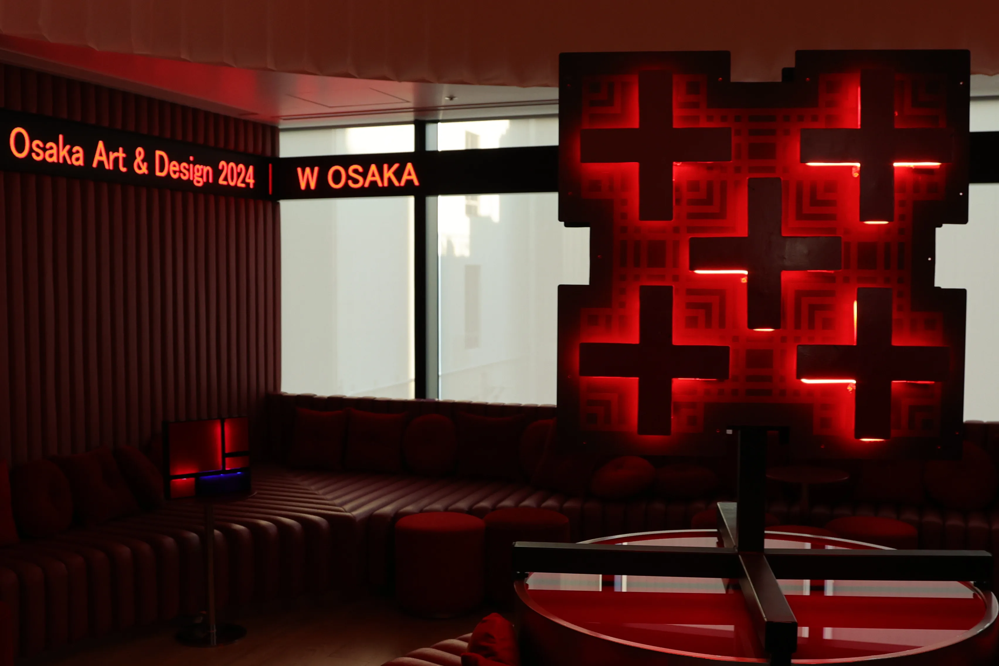 「大人の遊び場」がコンセプトのラグジュアリーホテル・W大阪での展示は工藤玲のネオンを用いた展示「VAPID」が開催中だ。工藤はアメリカとウクライナでネオンの技術を学んだ経験を活かし、現在は京都を拠点に制作する。