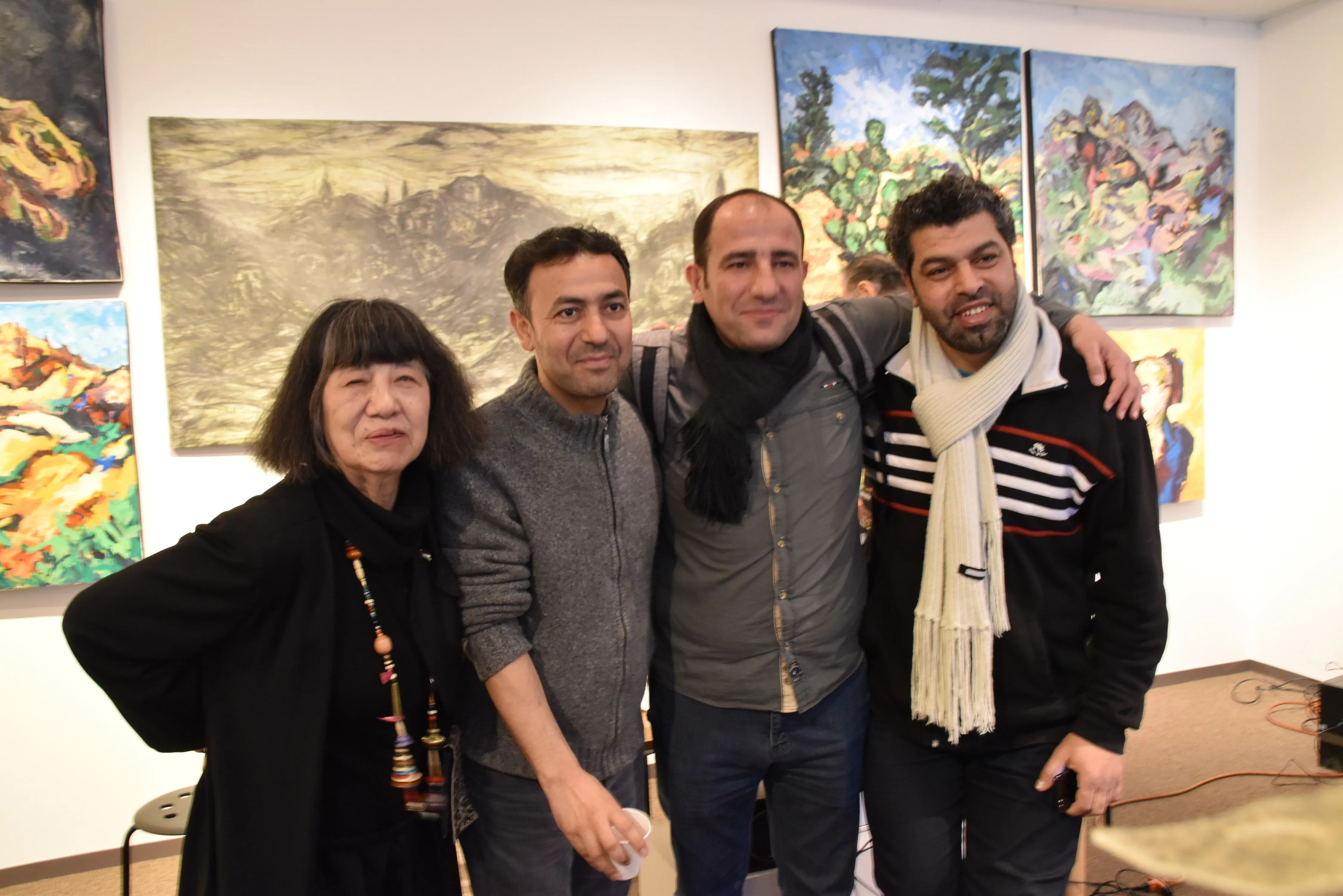 モハメドだけでなく「サマーアカデミー」参加者の示す、そのシリア人画家への尊敬の念は、難民施設での絵画教育の意義を伝えている。そうした難民施設で活動する画家は日本にもおり、近年は上條陽子のプロジェクトが注目されている(*6)。彼女は自身の作品展示のために1999年パレスチナに訪れて以来、レバノンでの難民キャンプに絵の教育者として繰り返し訪問するようになった。その出会いをきっかけにモハメドはソヘイル・サレイム、ライエッド・イサと一緒に来日、申請から何ヶ月もかかるビザの取得といくつもの検問を超えて、日本でのグループ展を2019年に実現した(*7)。困難な地でもアートの種が蒔かれて力強く育まれる様子に感動を覚える。