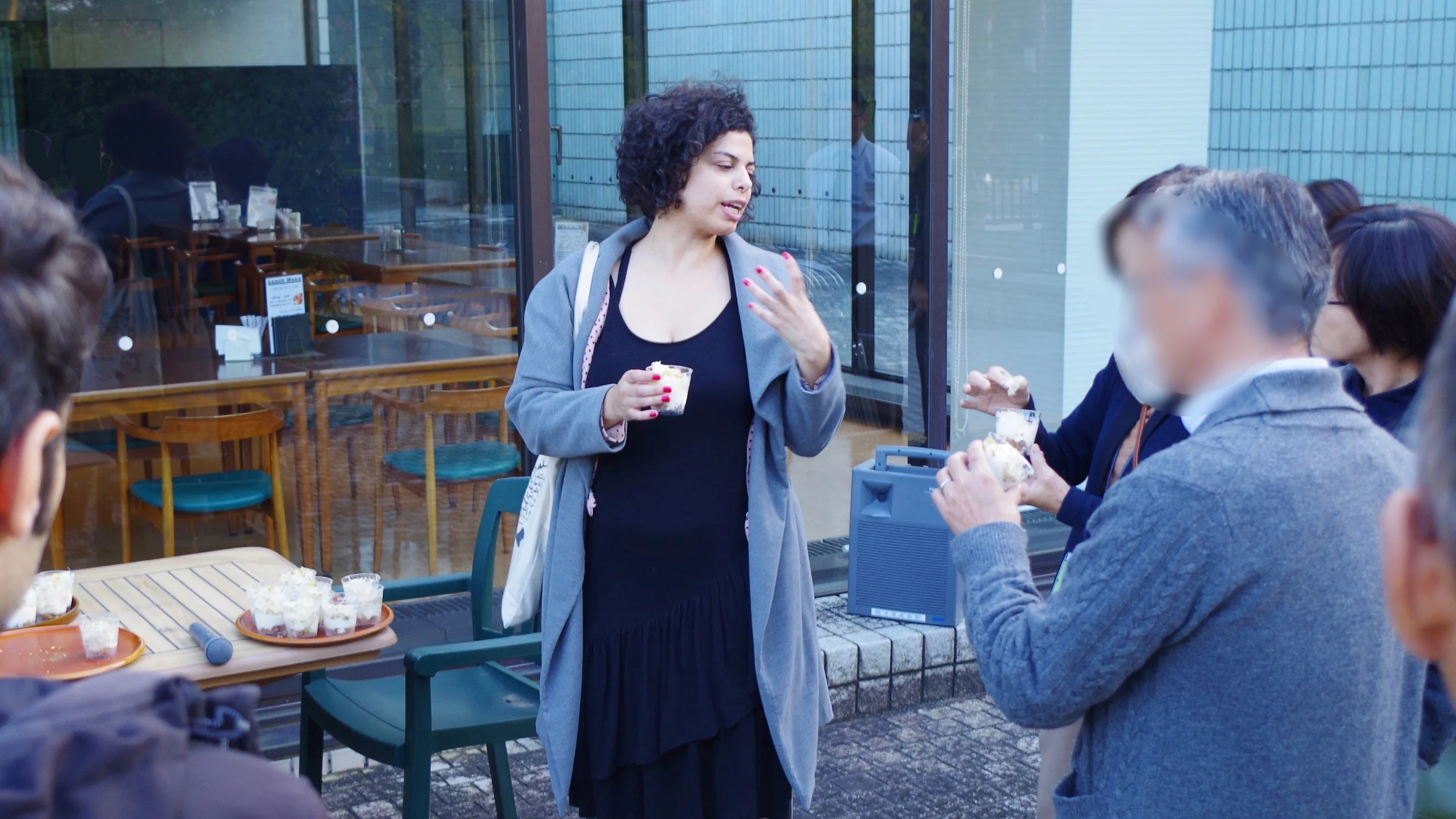 2人目は、現在パレスチナ自治区の中心都市であるラーマッラーを拠点にするミルナ・バーミア。彼女はエルサレムのベツァルエル美術デザイン学院を修了した後、国内外でのレジデンシープログラムに参加していて、2016年当時のトーキョーワンダーサイト(現在のTOKAS)の「海外クリエーター招聘プログラム」に参加していた(*4)。私は自身の展覧会のためにパレスチナ在住のアーティストにも出品してもらいたく、そして何よりも作品のクオリティが高かったことから、彼女に依頼した。その岐阜での展覧会の際、彼女はオープニング・レセプションでお菓子の材料を提供してくれたが、その行為は、パレスチナのローカルフードの調査研究を行なっていた当時の彼女のアートプロジェクトを予告するものだった。