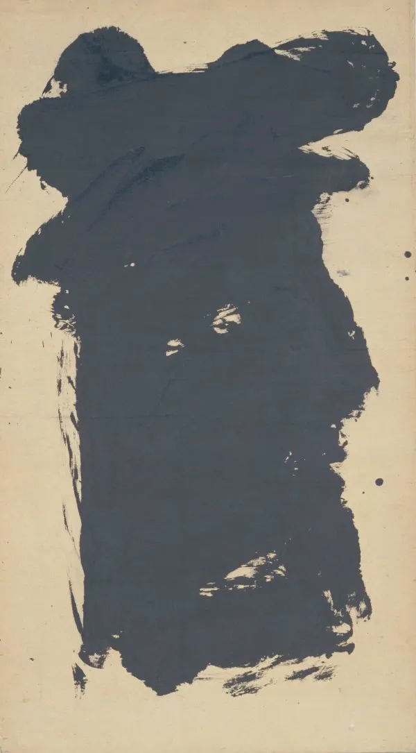 ピエール・スーラージュ Brou de noix sur papier 63×50cm 1949 スーラージュ美術館蔵 © Adagp, Paris/ Photo : musée Soulages, Rodez/ Christian Bousquet、森田子龍 蒼 1954 国立国際美術館蔵