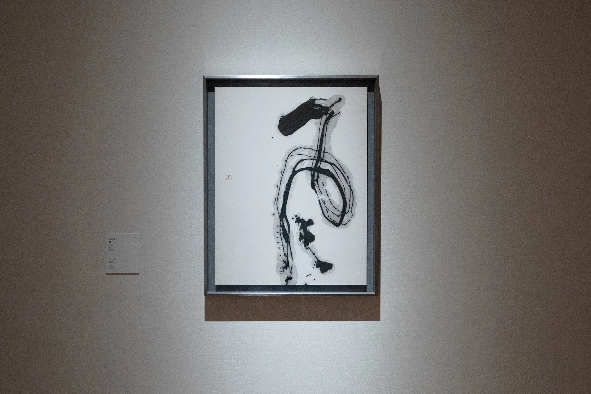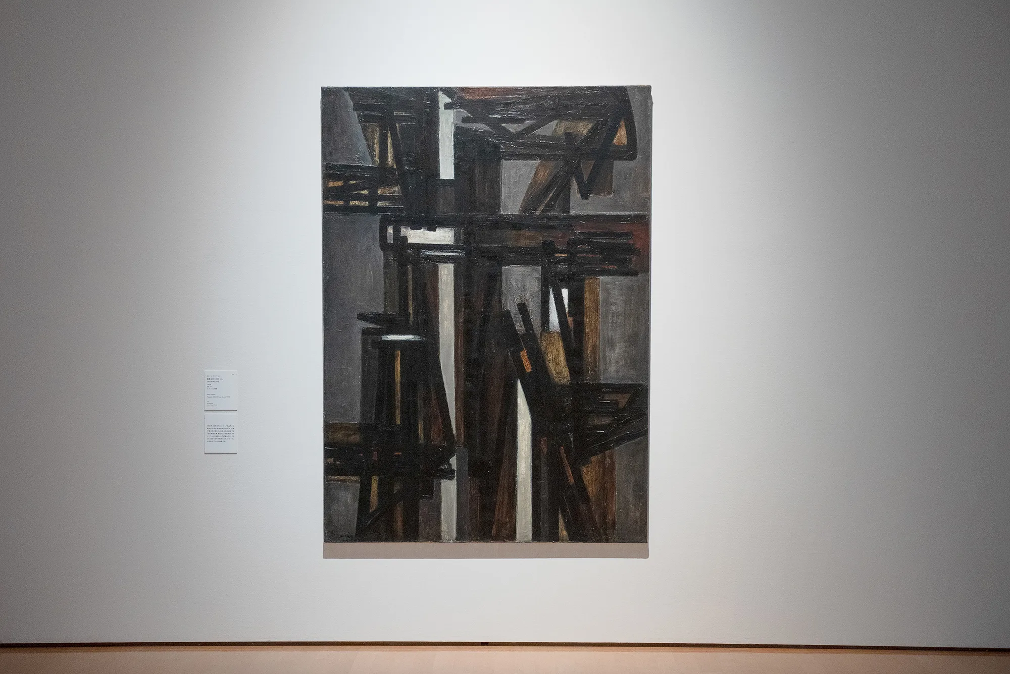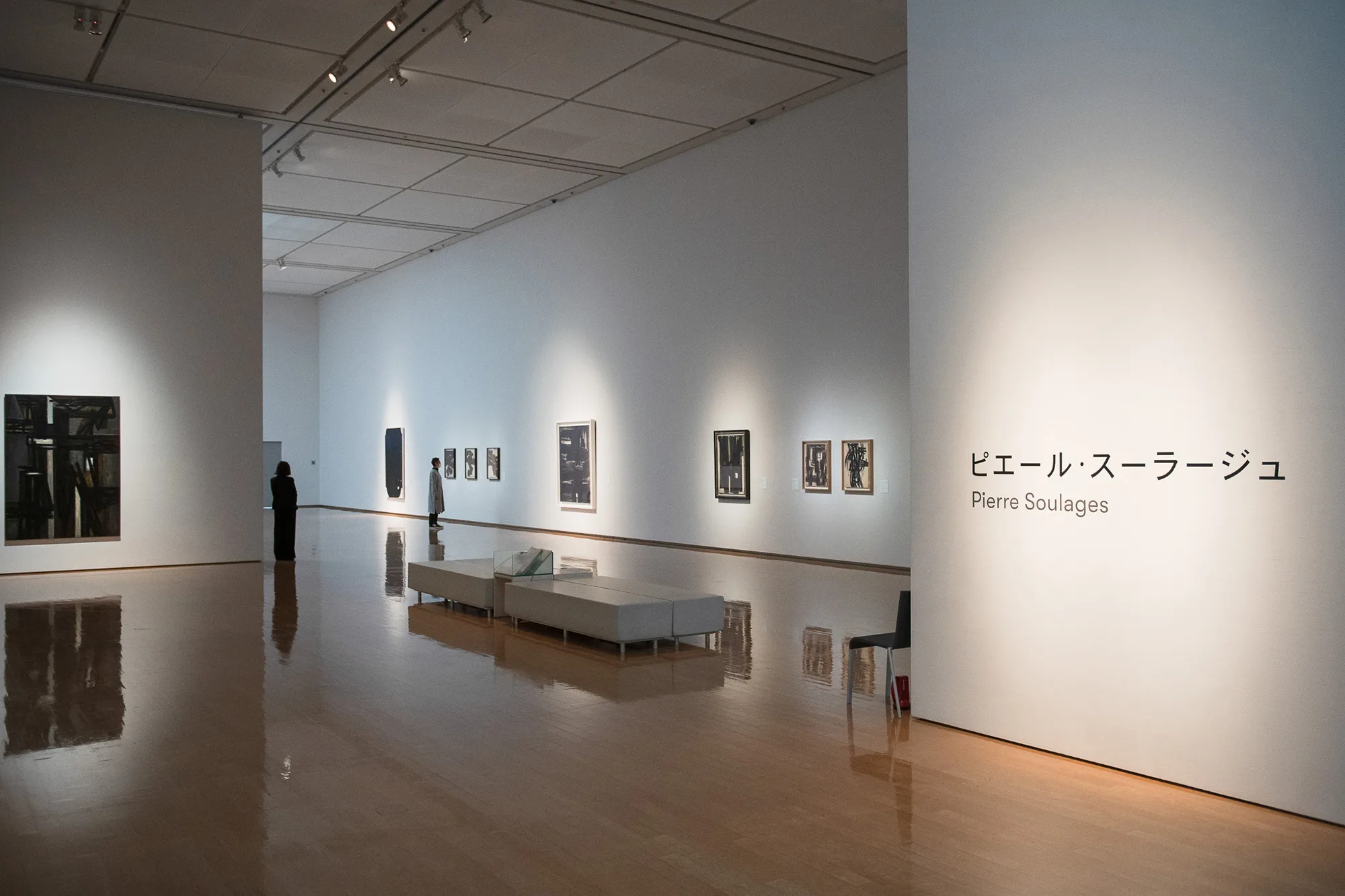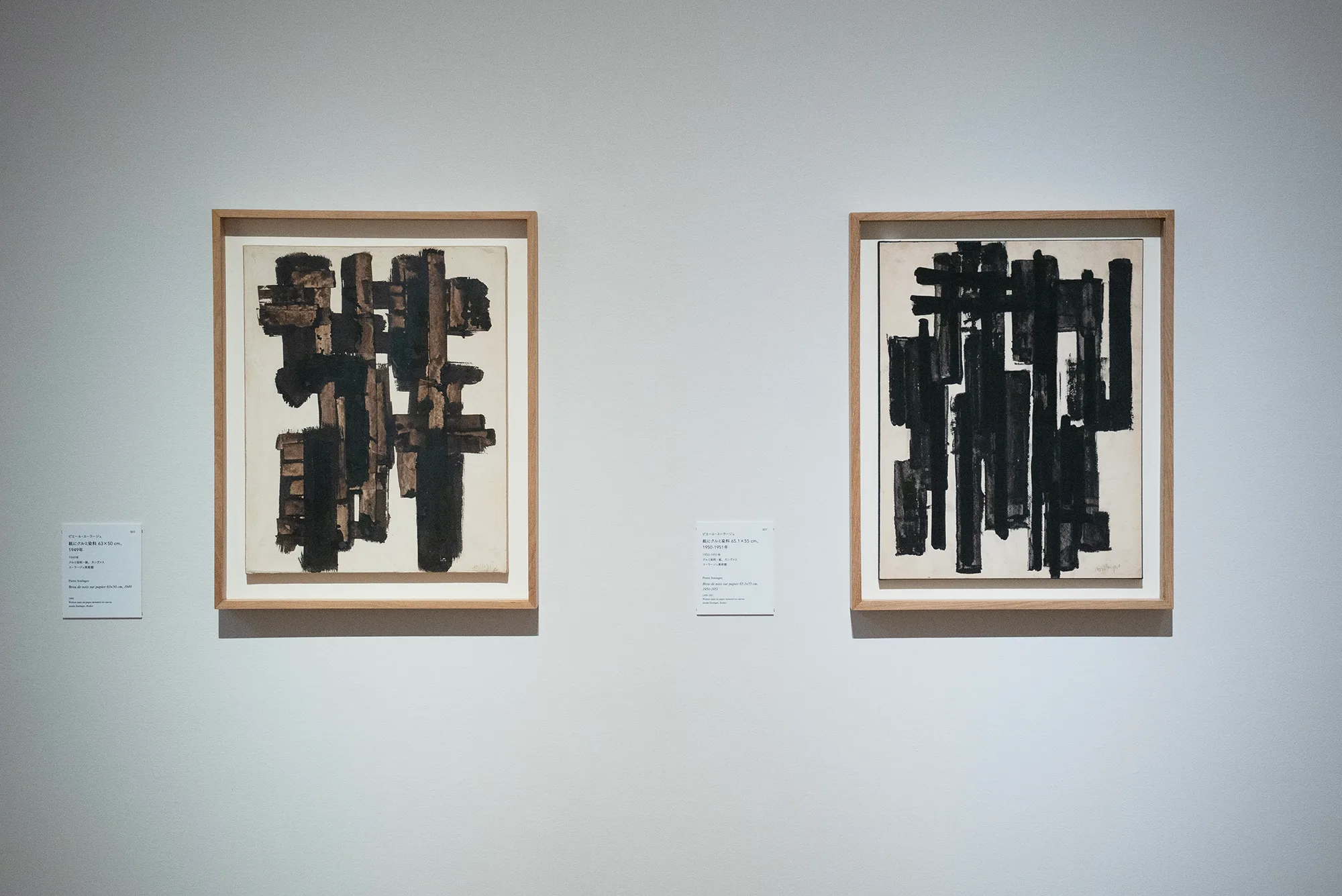 そして、森田の作品と資料を集めた最後の展示室で順路を振り返ると、森田の作品の向こうにスーラージュの作品が見える。西洋と東洋それぞれの価値観に裏打ちされた技を磨き、方法論を築き上げたふたりの表現者は、絵画や書の隔たりなく、それぞれに普遍的な表現を目指したのではないだろうか。森田、スーラージュ、森田、スーラージュと展示室ごとに個々の作品を鑑賞しながら、そんな想像が生まれてくる。
