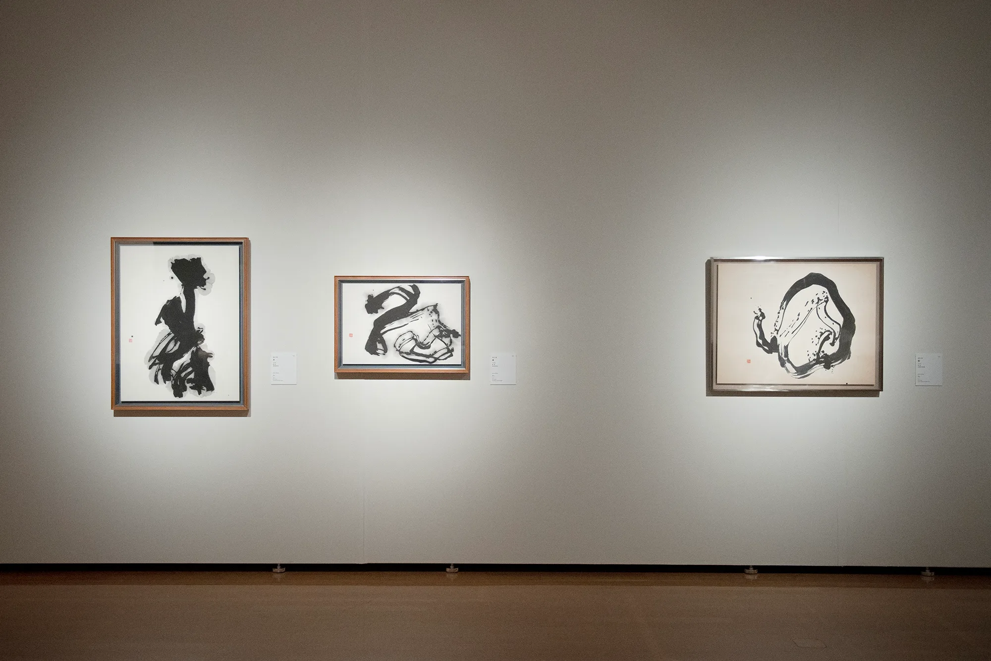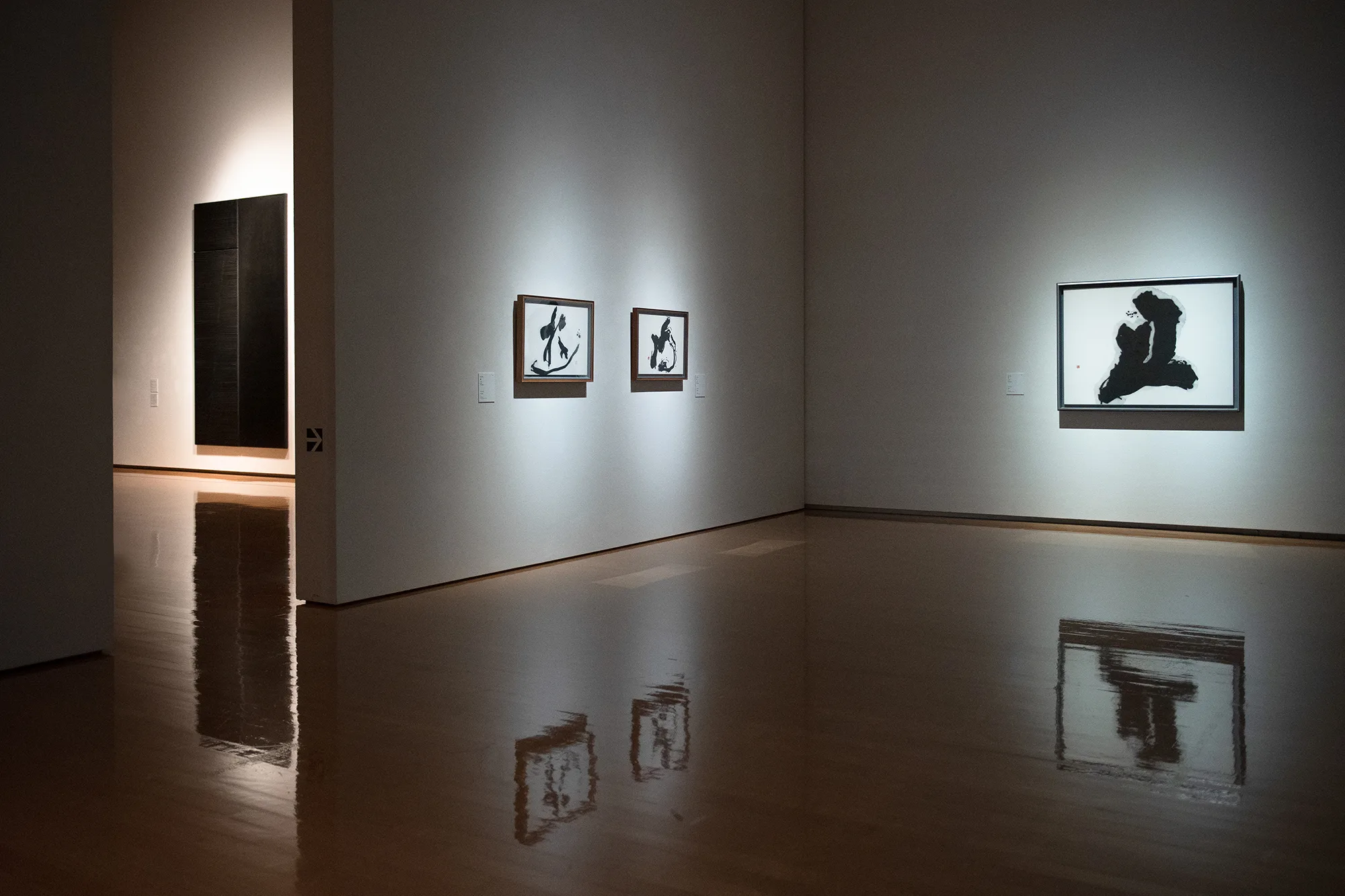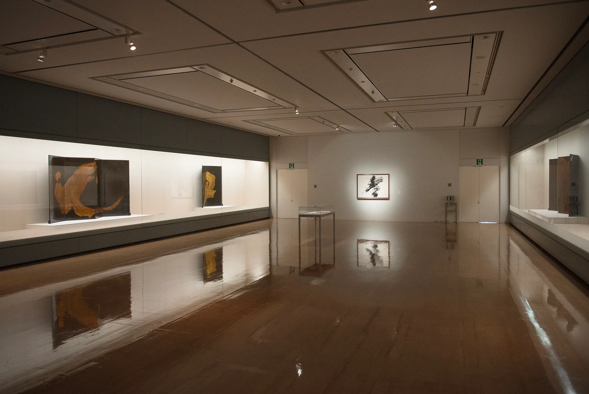 そして、森田の作品と資料を集めた最後の展示室で順路を振り返ると、森田の作品の向こうにスーラージュの作品が見える。西洋と東洋それぞれの価値観に裏打ちされた技を磨き、方法論を築き上げたふたりの表現者は、絵画や書の隔たりなく、それぞれに普遍的な表現を目指したのではないだろうか。森田、スーラージュ、森田、スーラージュと展示室ごとに個々の作品を鑑賞しながら、そんな想像が生まれてくる。
