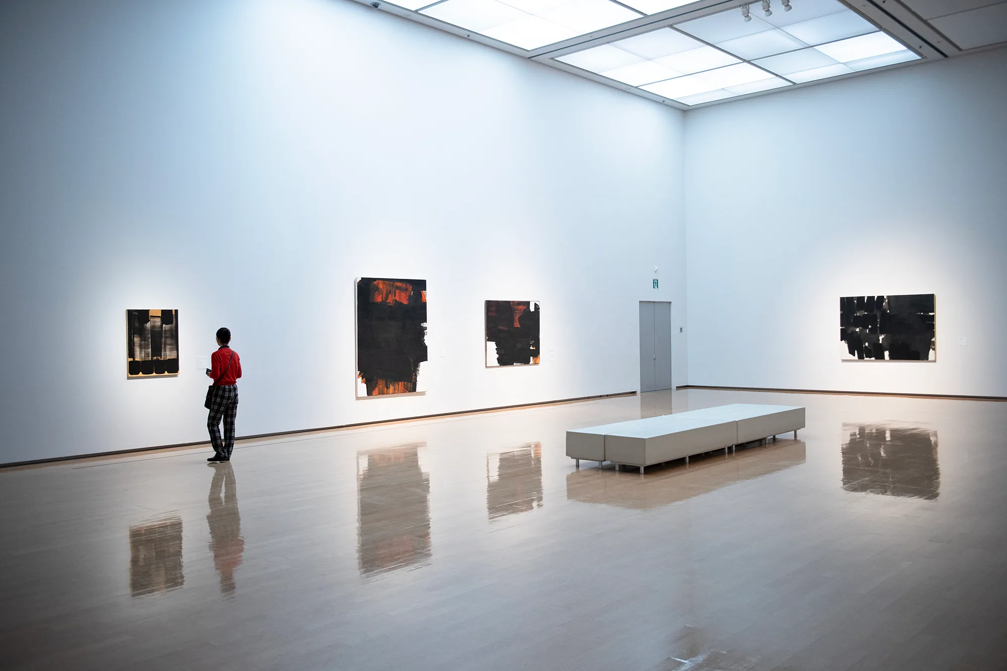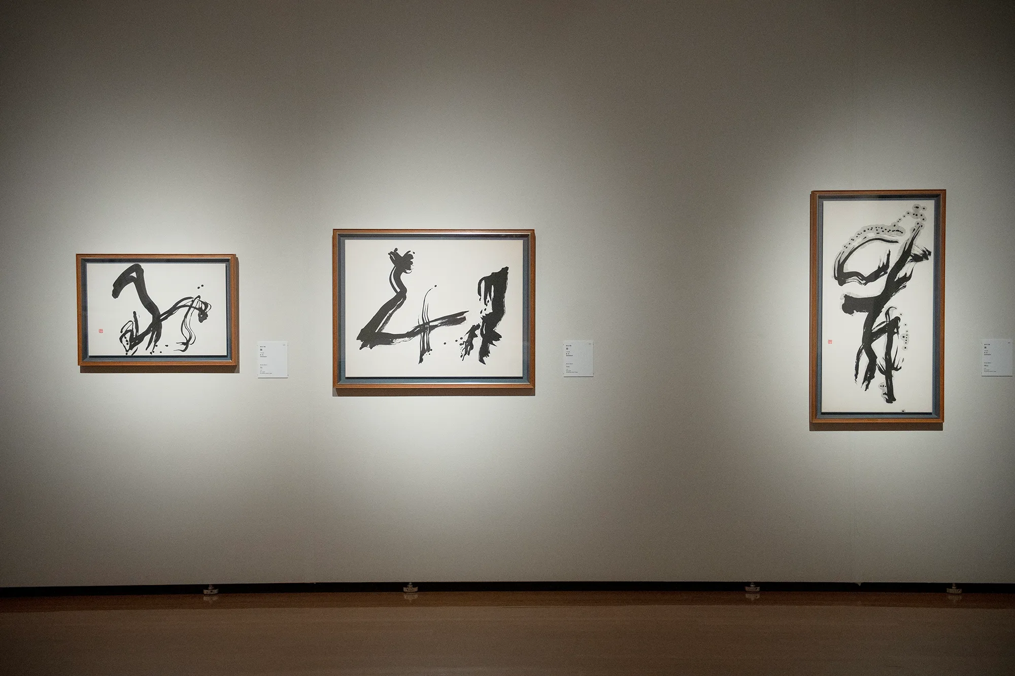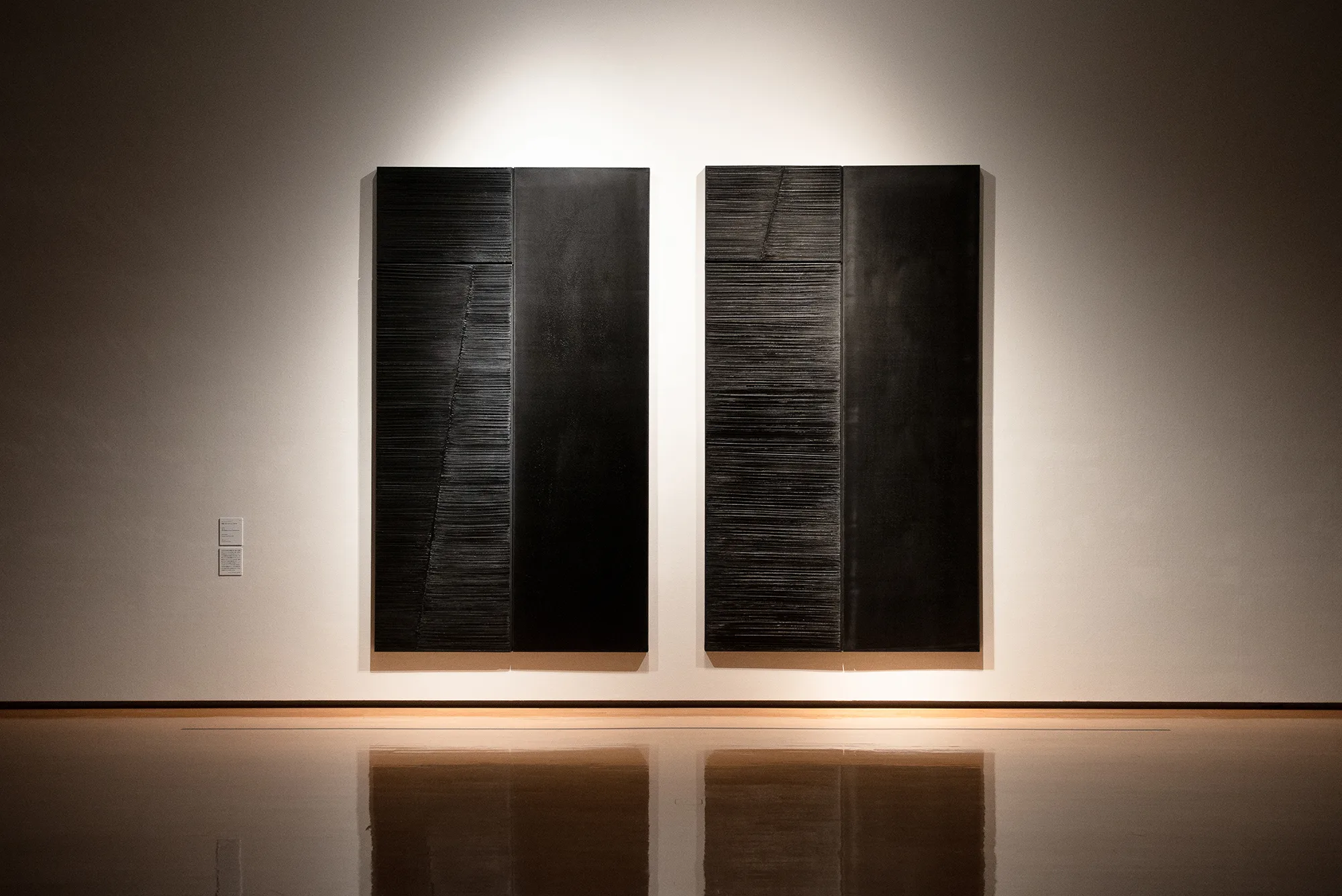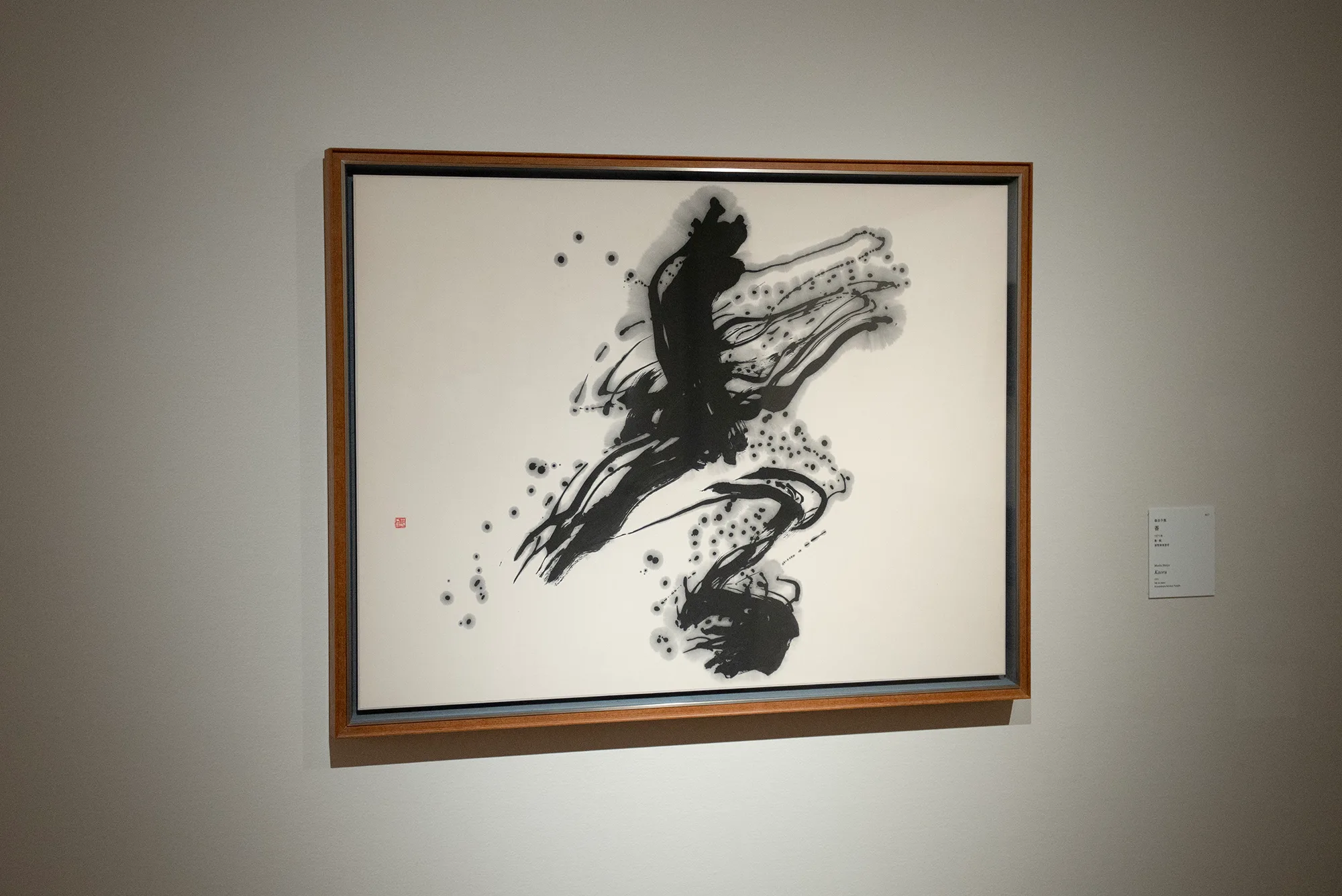 そして、森田の作品と資料を集めた最後の展示室で順路を振り返ると、森田の作品の向こうにスーラージュの作品が見える。西洋と東洋それぞれの価値観に裏打ちされた技を磨き、方法論を築き上げたふたりの表現者は、絵画や書の隔たりなく、それぞれに普遍的な表現を目指したのではないだろうか。森田、スーラージュ、森田、スーラージュと展示室ごとに個々の作品を鑑賞しながら、そんな想像が生まれてくる。