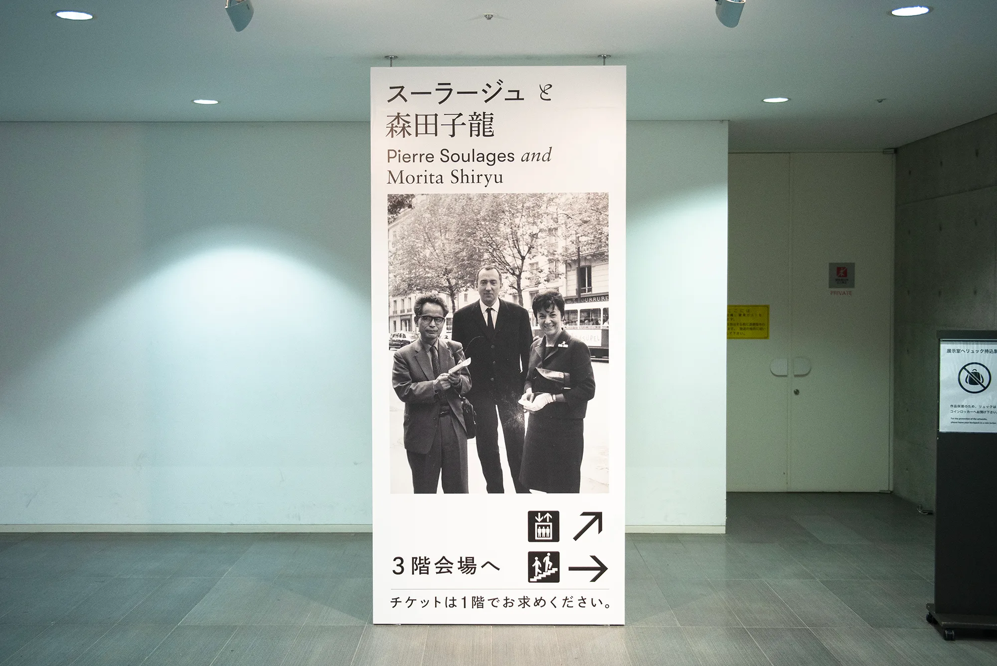 1951年、フランス現代絵画の気鋭の作家たちが出展する「サロン・ド・メ」の、前年出品作を集めた「日仏美術交流 現代フランス美術展 サロン・ド・メェ日本展」が開催された。東京を皮切りに、大阪、福岡、名古屋、札幌へと巡回したこの展覧会には、48年から「サロン・ド・メ」に出展し、評価を高めていたスーラージュの作品も出品。日本で初めて作品が紹介された。